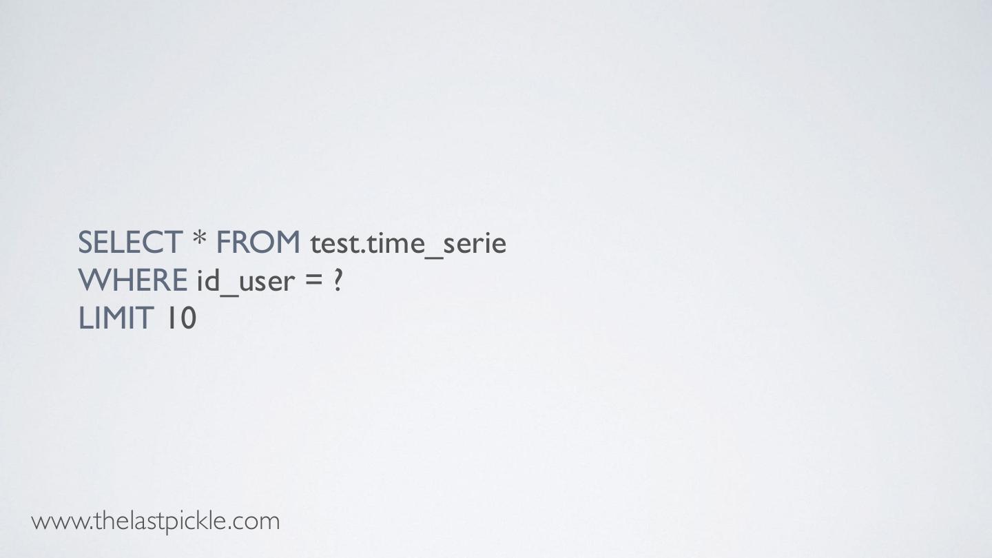 21 . SELECT * FROM test.time_serie WHERE id_user = ? LIMIT 10 www.thelastpickle.com