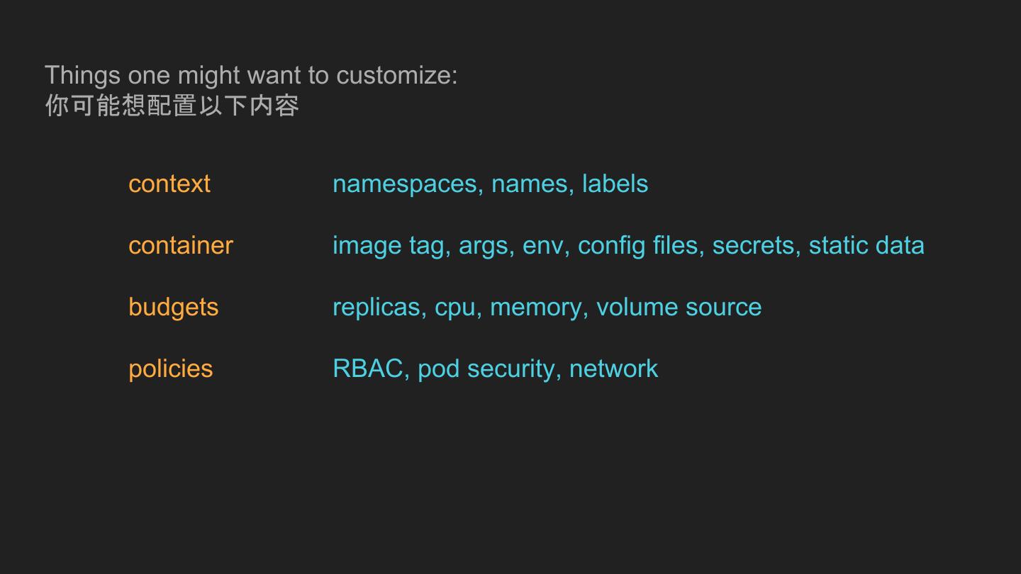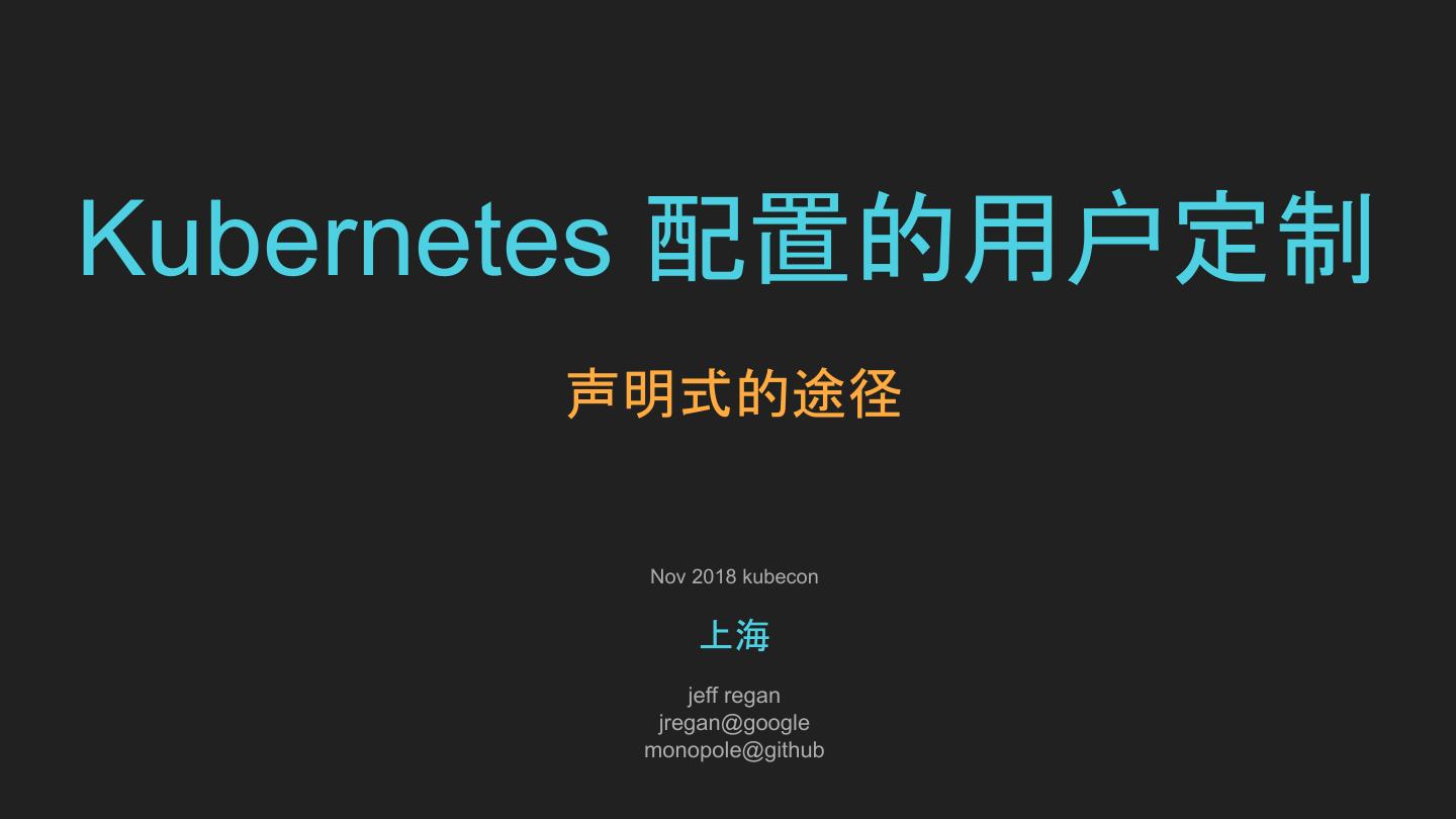2 .Kubernetes 配置的用户定制 声明式的途径 Nov 2018 kubecon 上海 jeff regan jregan@google monopole@github