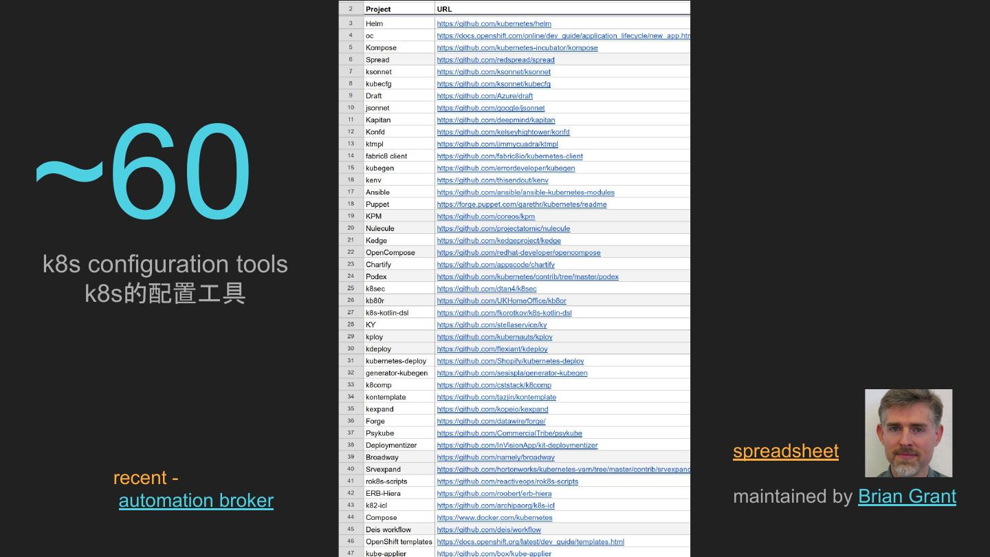 3 .~60 k8s configuration tools k8s的配置工具 spreadsheet recent - automation broker maintained by Brian Grant
