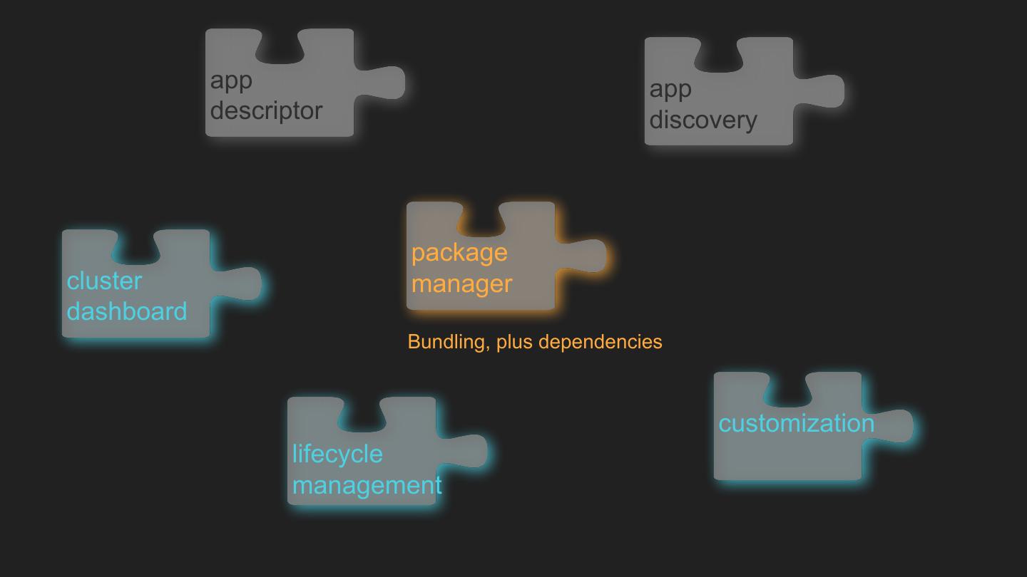 7 . app app descriptor discovery package cluster manager dashboard Bundling, plus dependencies customization lifecycle management