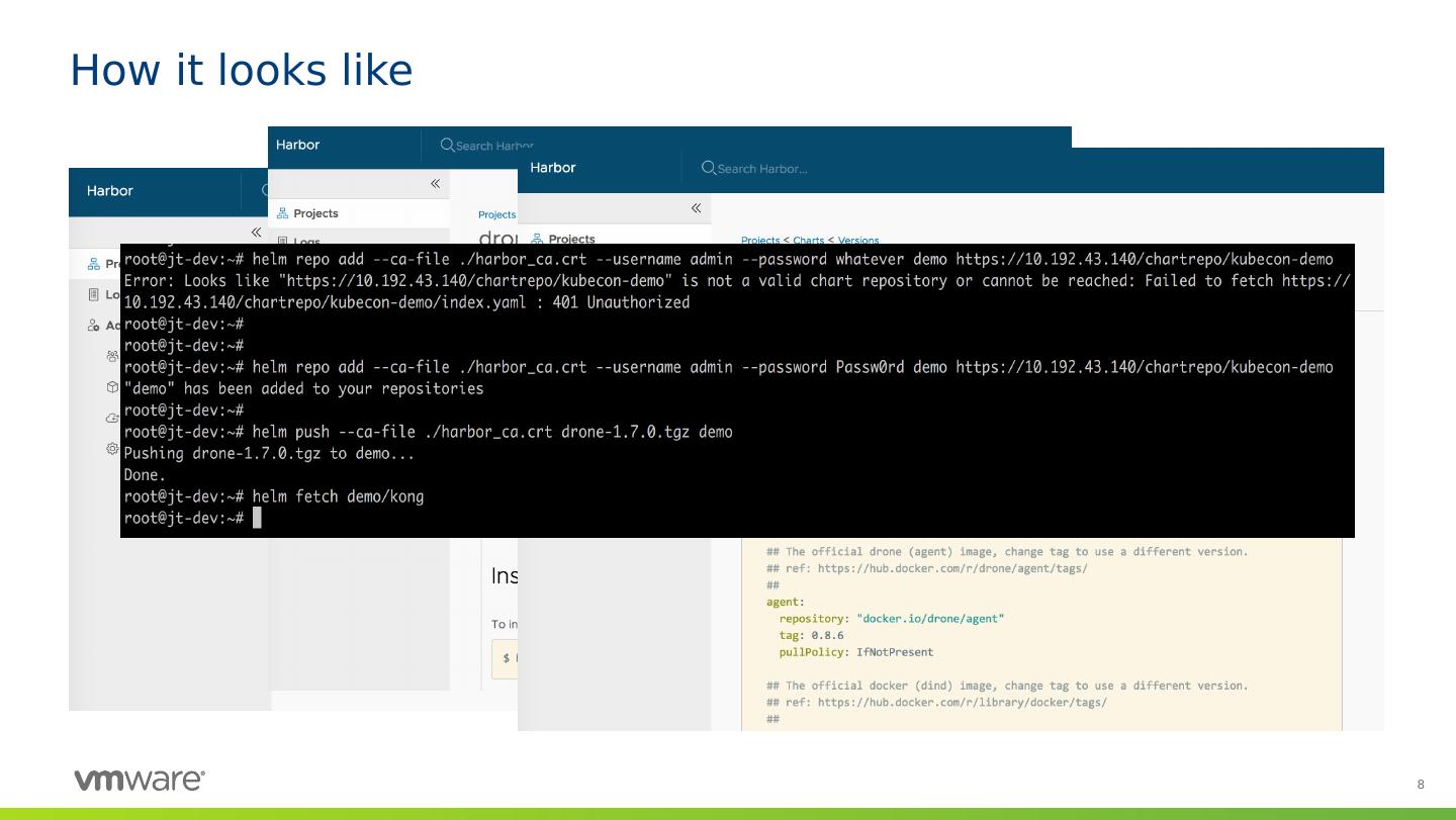 3 .Embrace kubernetes and cloud native Helm is the standard for package deployment and management. Effective approach for running Enterprise application on top of Kubernetes. Single pane for Kubernetes users Provide consistent user experience for both Helm chart and image management. + Harbor as the “Kubernetes Registry”