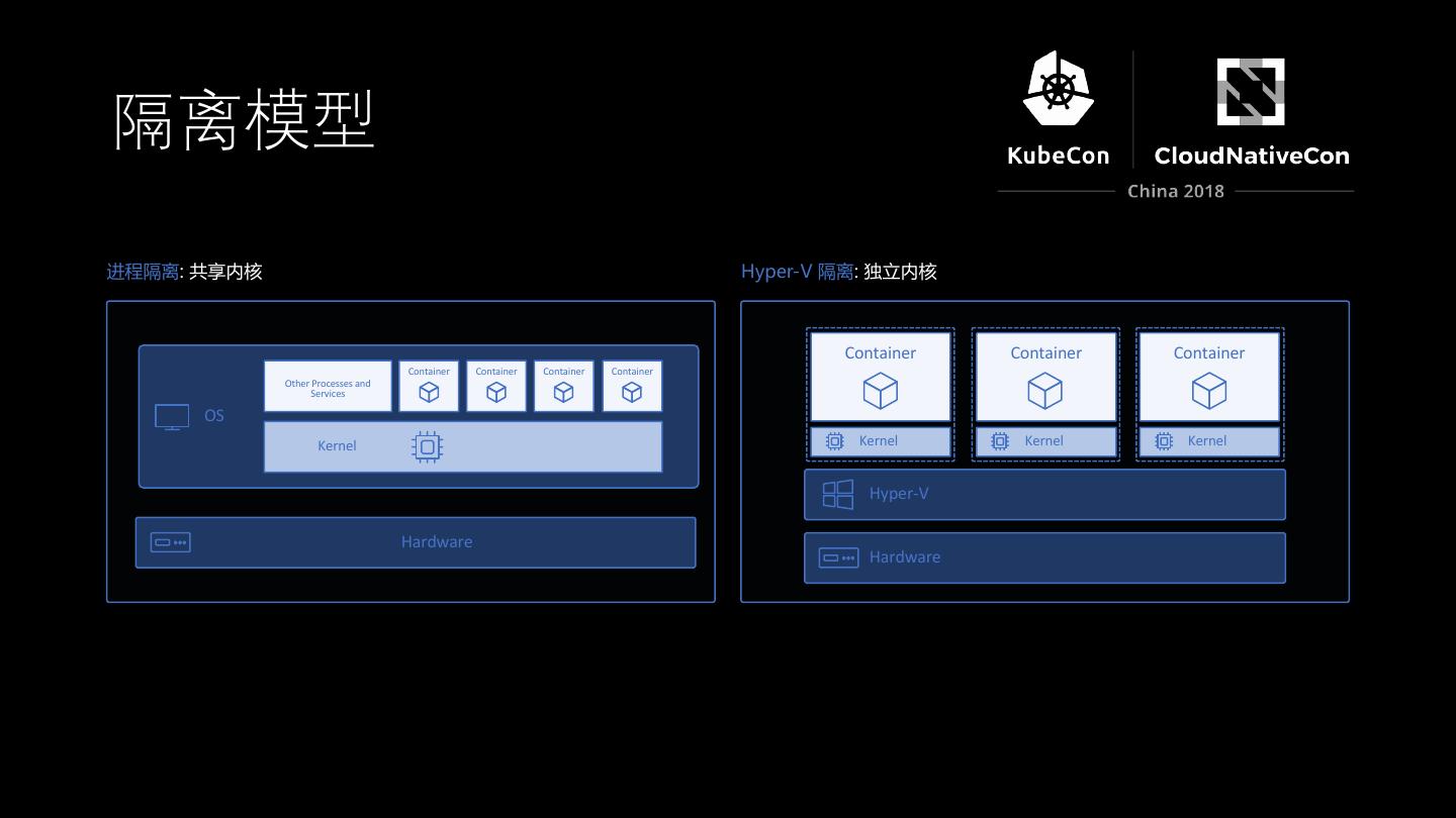 9 .- - Container Container Container Container Container Container Container Other Processes and Services OS Kernel Kernel Kernel Kernel Hyper-V Hardware Hardware