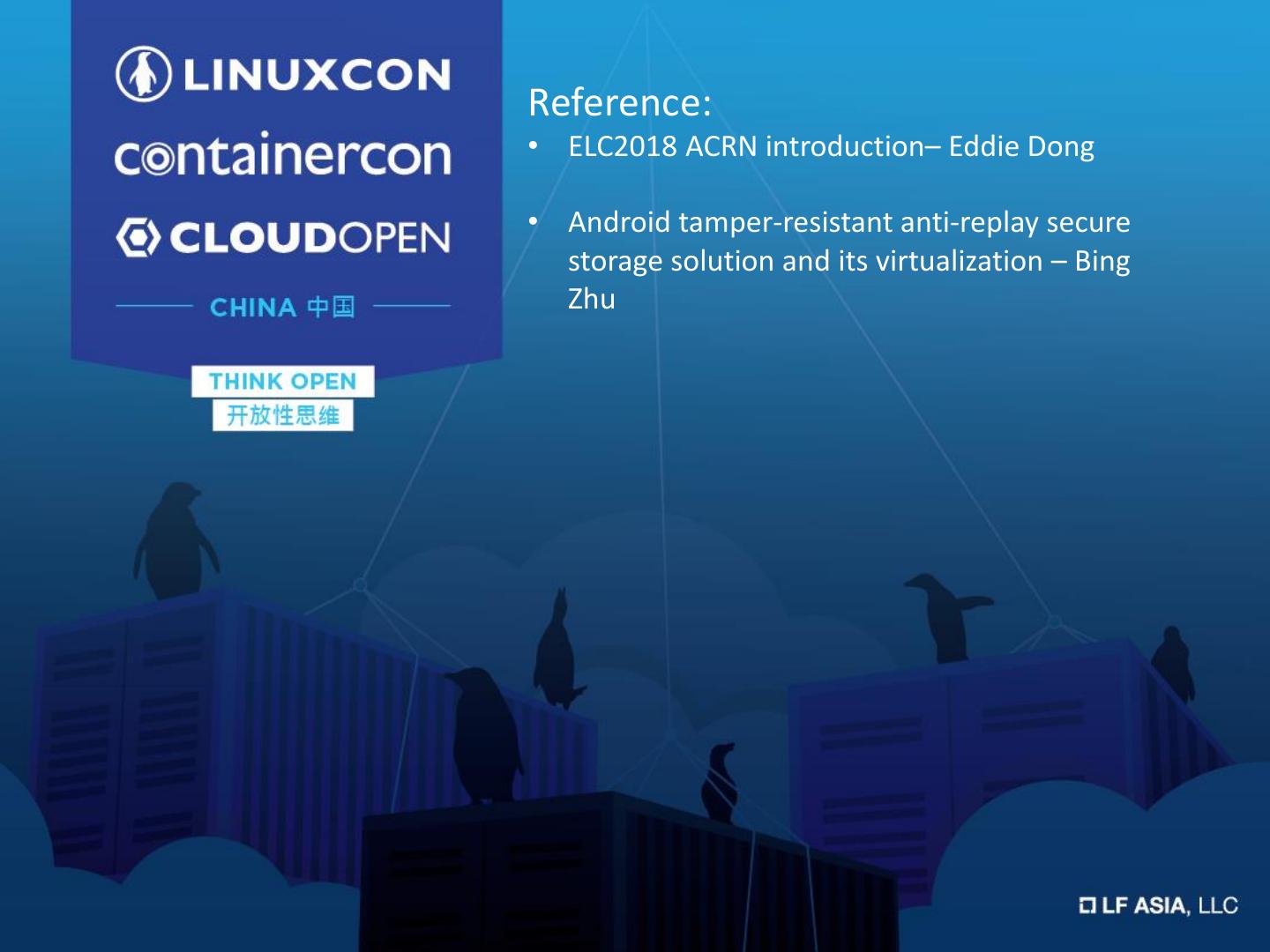 19 .Reference: • ELC2018 ACRN introduction– Eddie Dong • Android tamper-resistant anti-replay secure storage solution and its virtualization – Bing Zhu