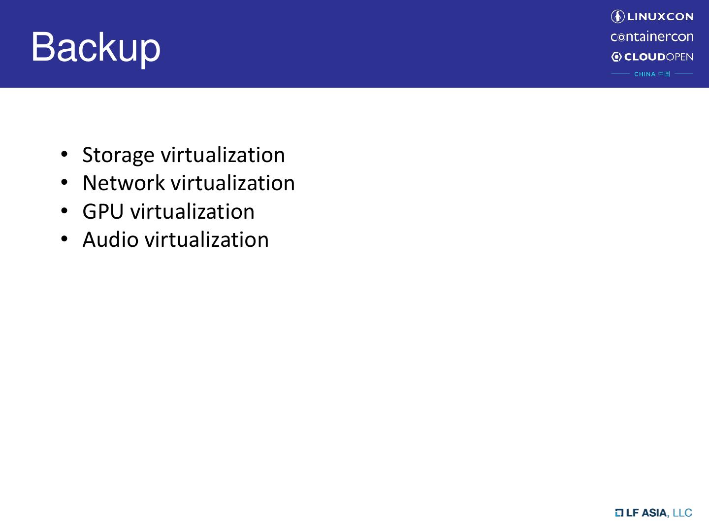 20 .Backup • Storage virtualization • Network virtualization • GPU virtualization • Audio virtualization