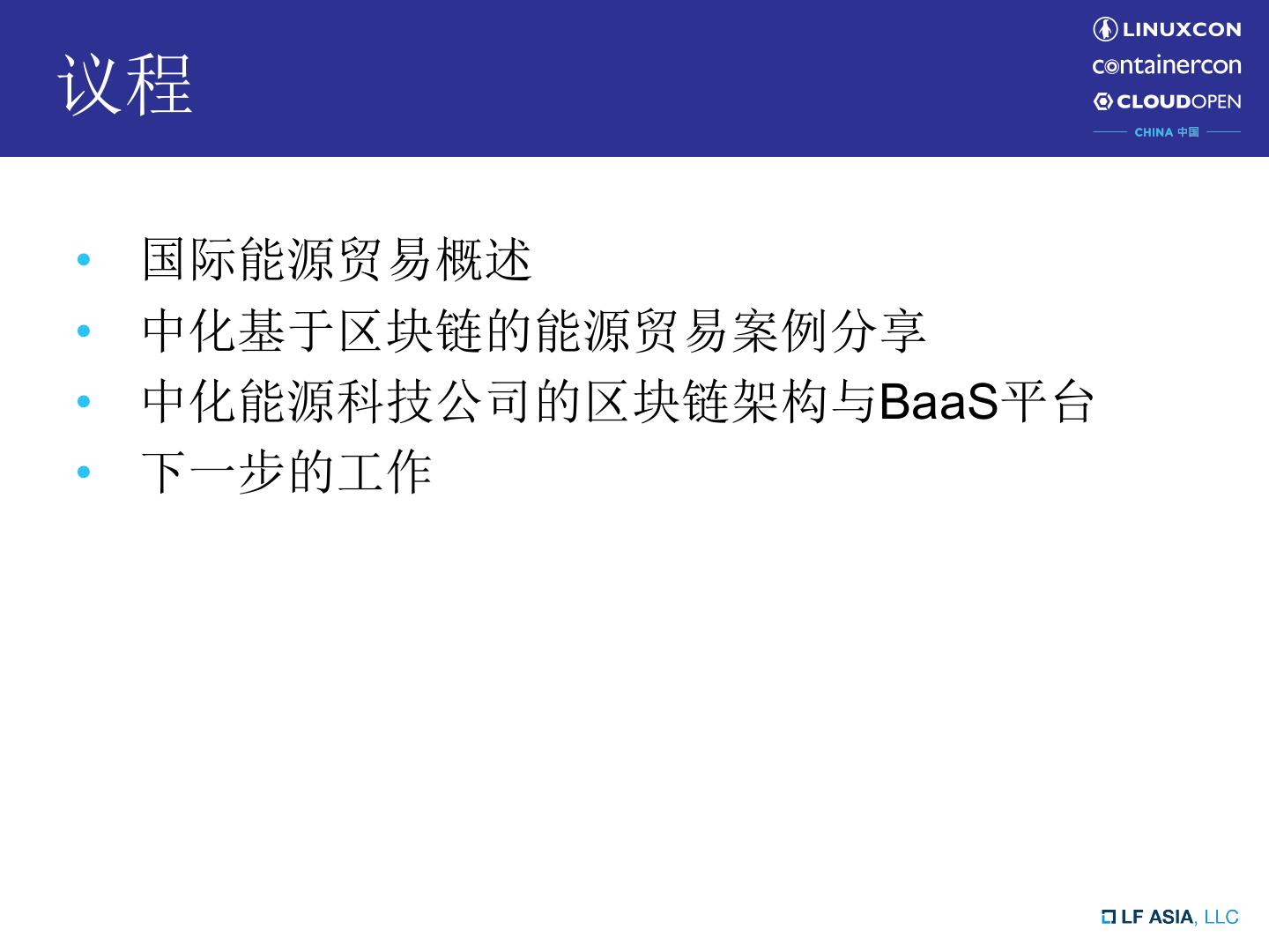 2 .议程 • 国际能源贸易概述 • 中化基于区块链的能源贸易案例分享 • 中化能源科技公司的区块链架构与BaaS平台 • 下一步的工作