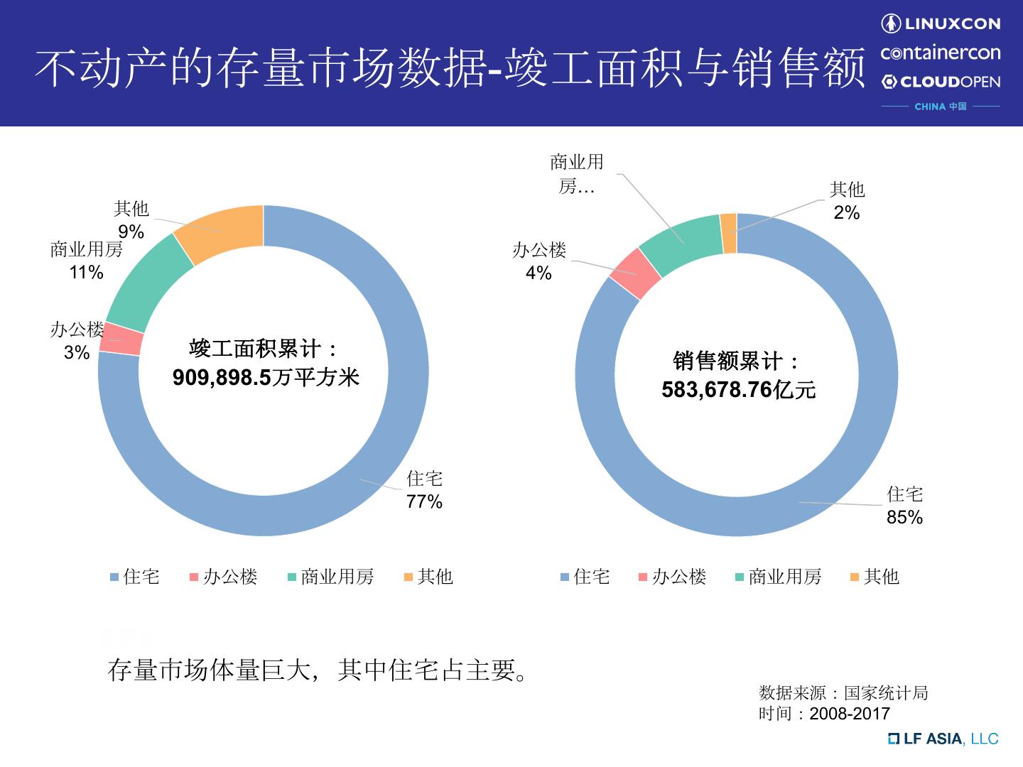 2 .不动产的存量市场数据-竣工面积与销售额 商业用 房… 其他 其他 2% 9% 商业用房 办公楼 11% 4% 办公楼 3% 竣工面积累计: 销售额累计: 909,898.5万平方米 583,678.76亿元 住宅 77% 住宅 85% 住宅 办公楼 商业用房 其他 住宅 办公楼 商业用房 其他 存量市场体量巨大,其中住宅占主要。 数据来源:国家统计局 时间:2008-2017