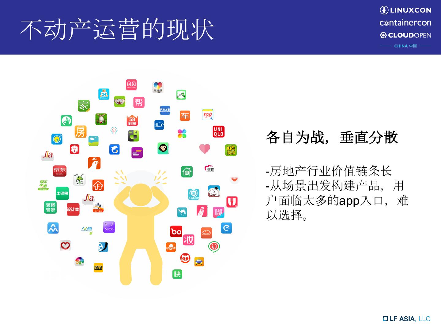 6 .不动产运营的现状 各自为战,垂直分散 -房地产行业价值链条长 -从场景出发构建产品,用 户面临太多的app入口,难 以选择。