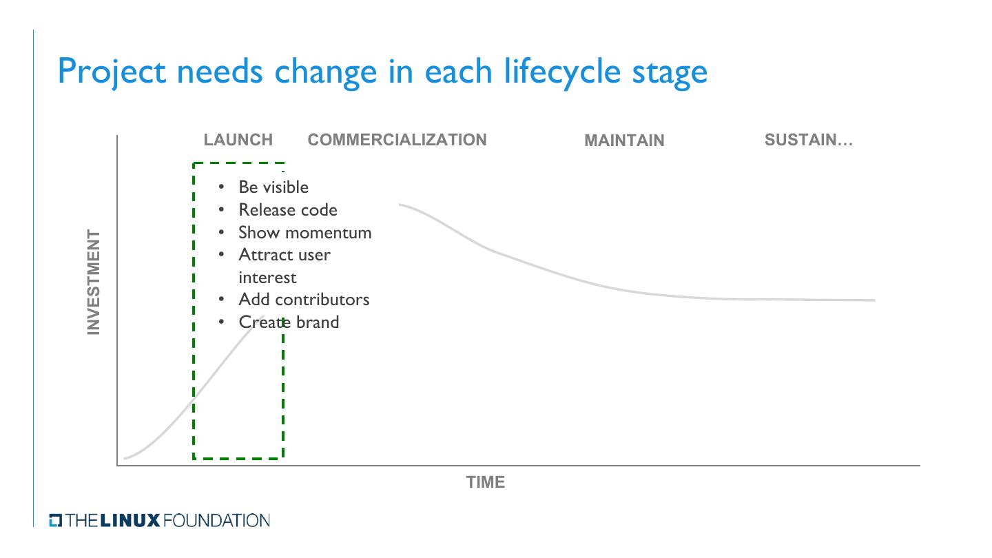 19 .Project needs change in each lifecycle stage LAUNCH COMMERCIALIZATION MAINTAIN SUSTAIN… • Be visible • Release code • Show momentum INVESTMENT • Attract user interest • Add contributors • Create brand TIME