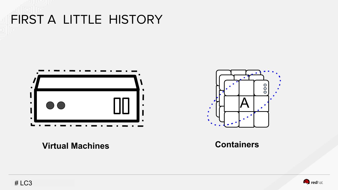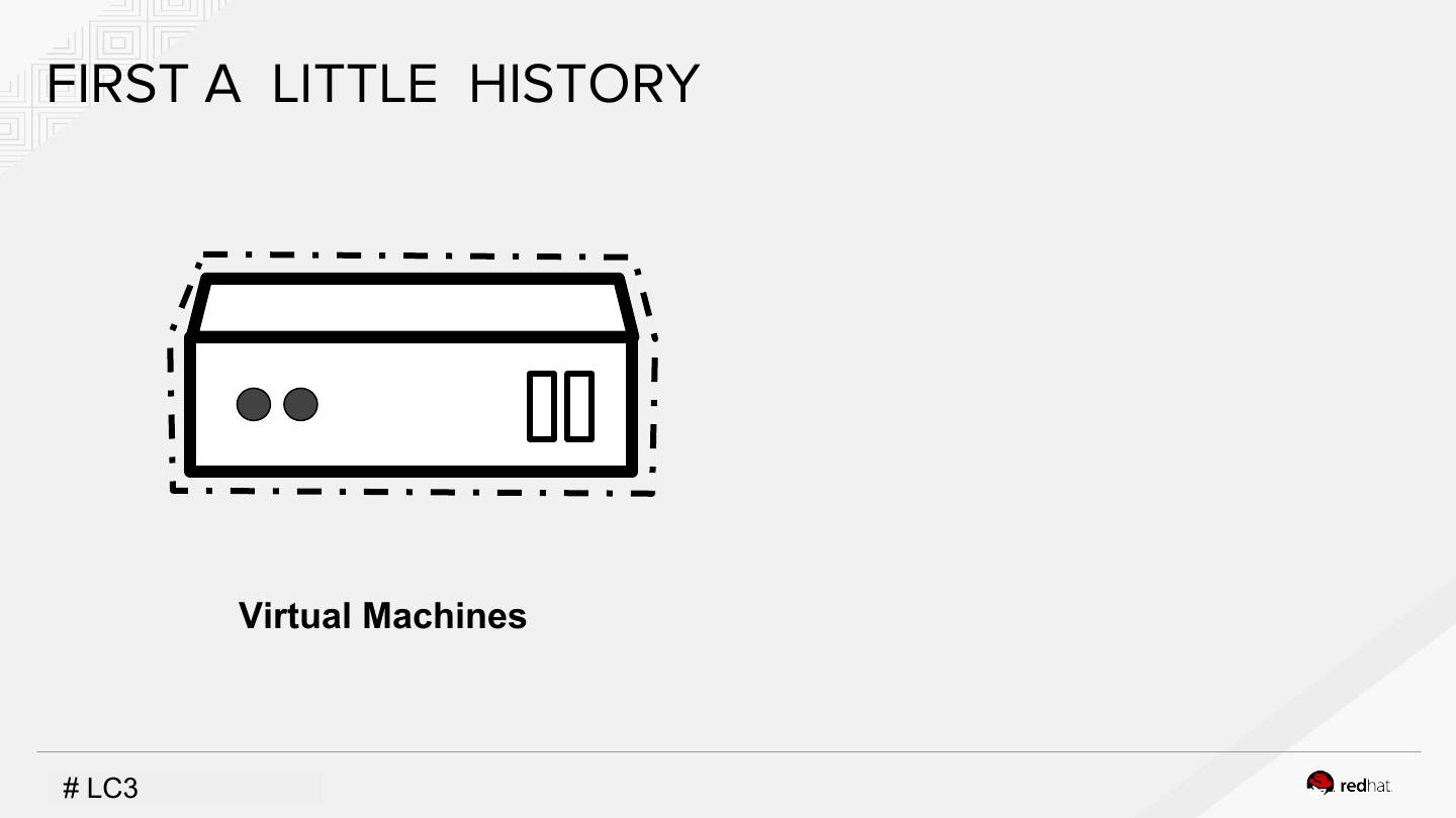 4 .FIRST A LITTLE HISTORY A Virtual Machines Containers #INSERT LC3DESIGNATOR, IF NEEDED