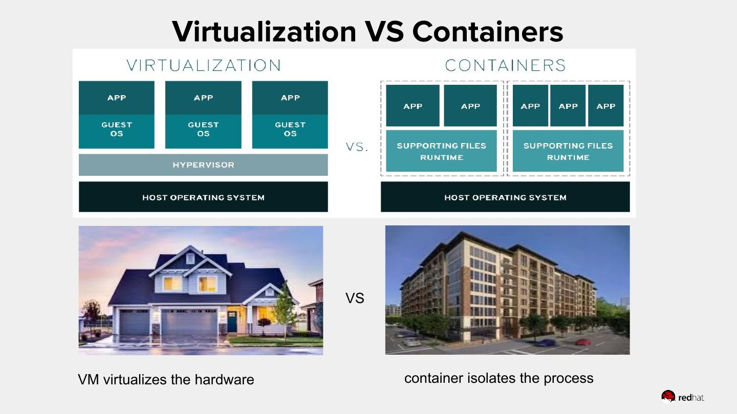 5 . Virtualization VS Containers VS VM virtualizes the hardware container isolates the process