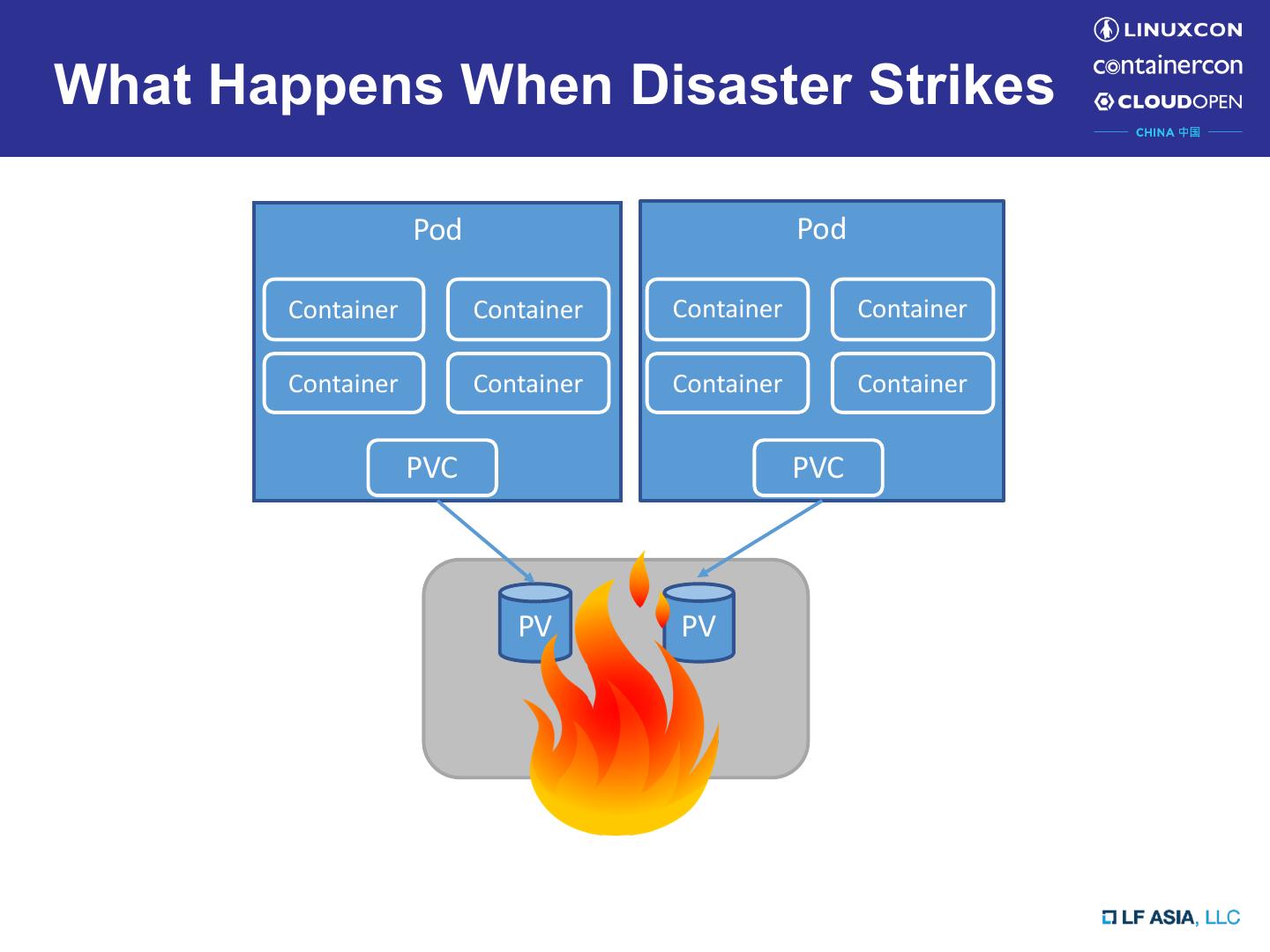 5 .What Happens When Disaster Strikes Pod Pod Container Container Container Container Container Container Container Container PVC PVC PV PV