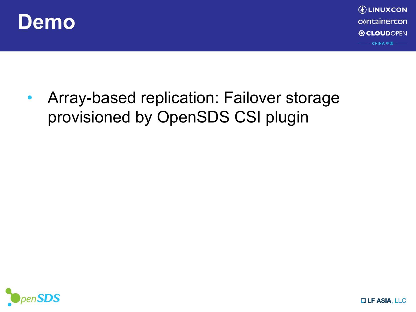 29 .Demo • Array-based replication: Failover storage provisioned by OpenSDS CSI plugin