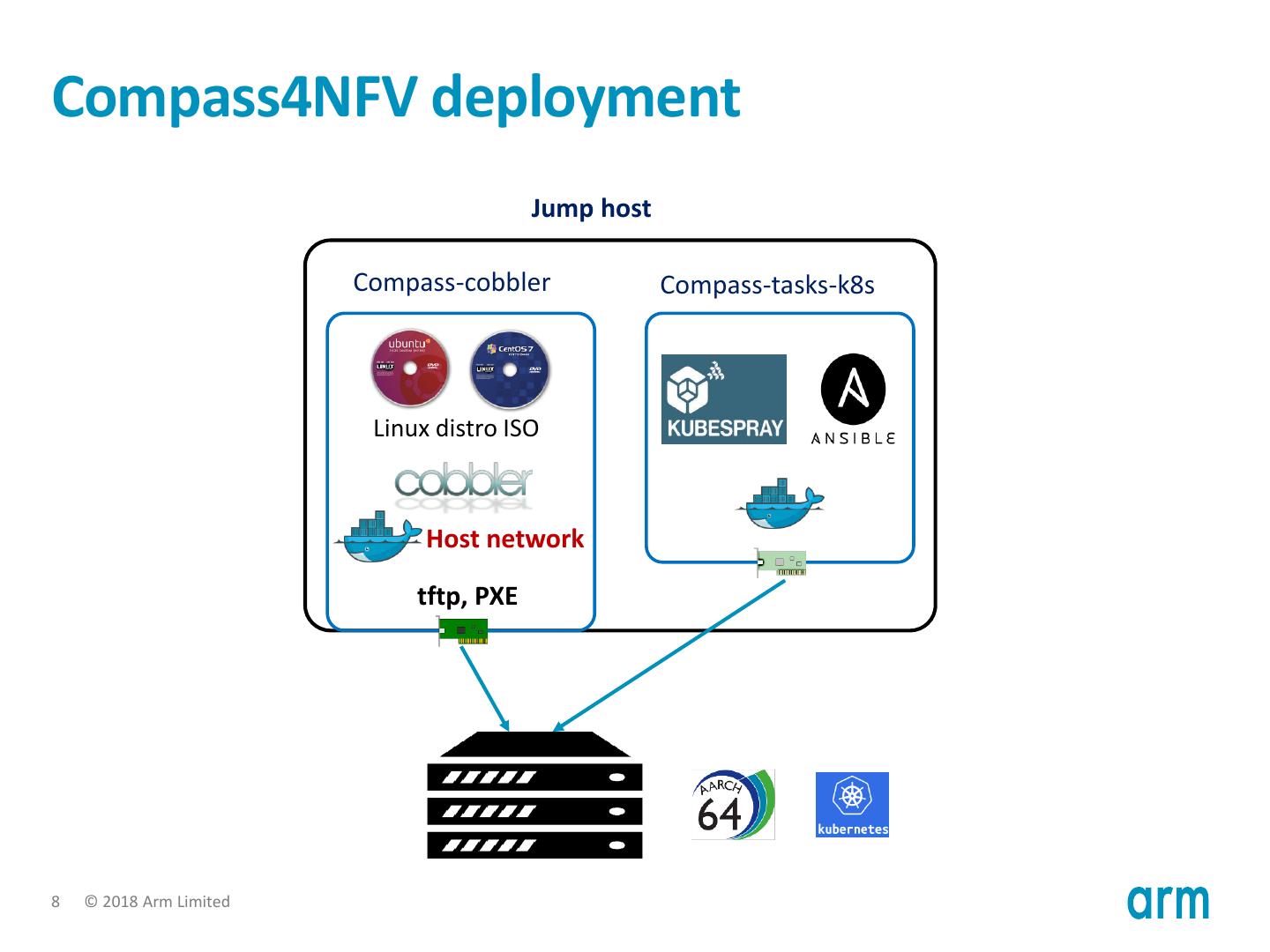 7 .Compass4NFV architecture Compass-deck VNF Compass-cobbler Compass-tasks 7 © 2018 Arm Limited
