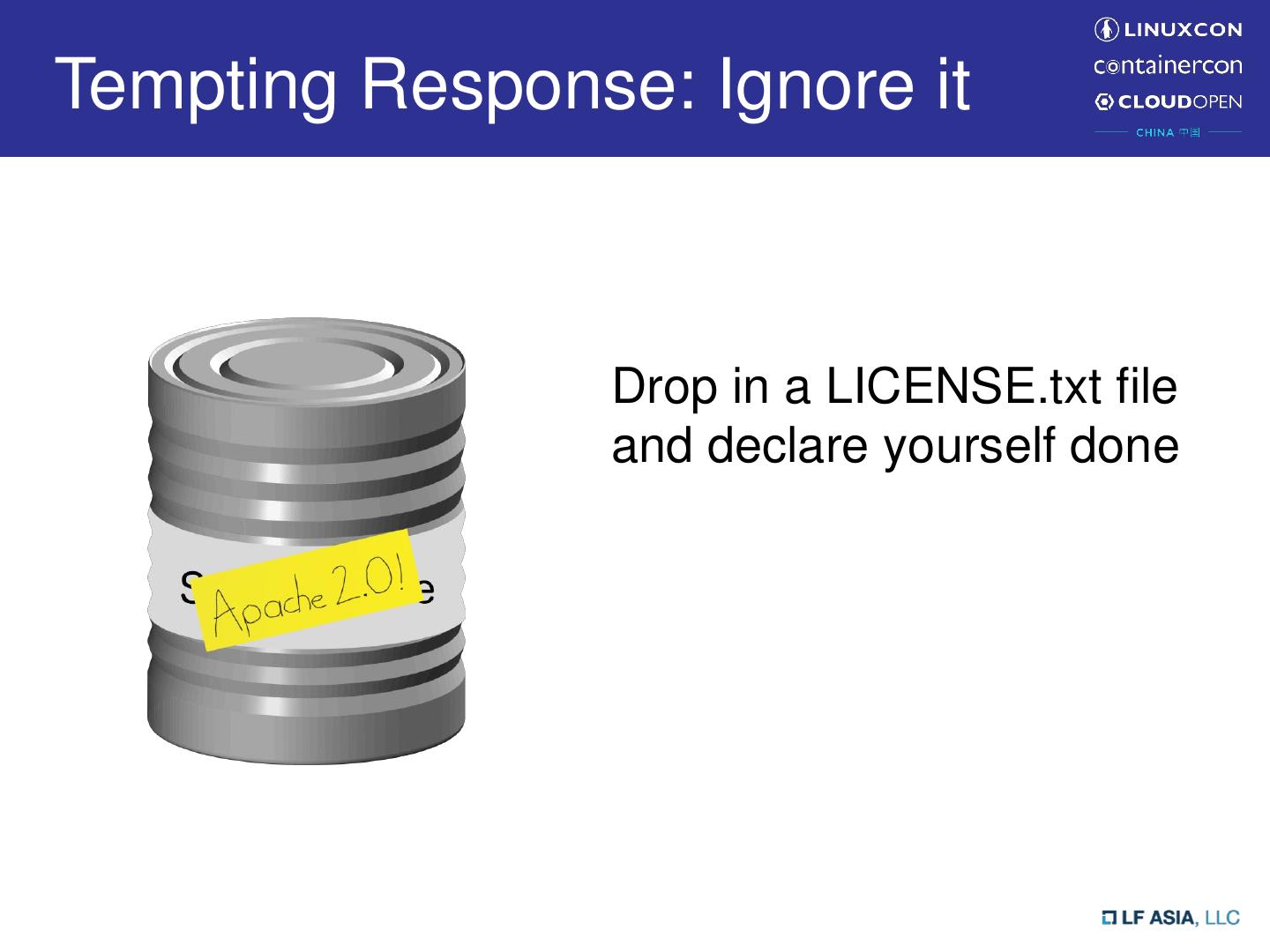 20 .Tempting Response: Ignore it Drop in a LICENSE.txt file and declare yourself done
