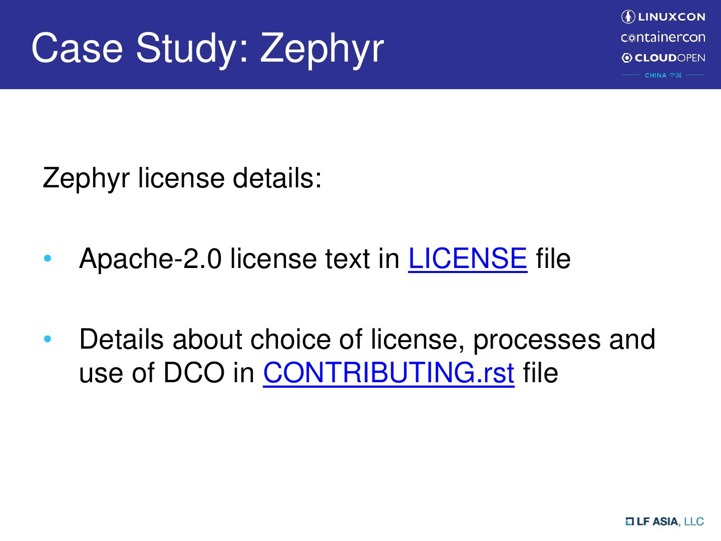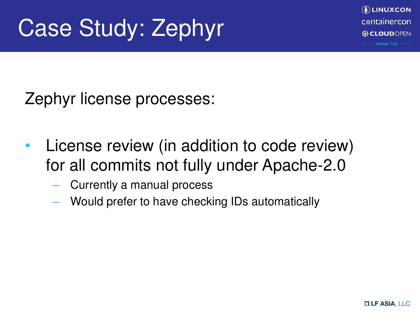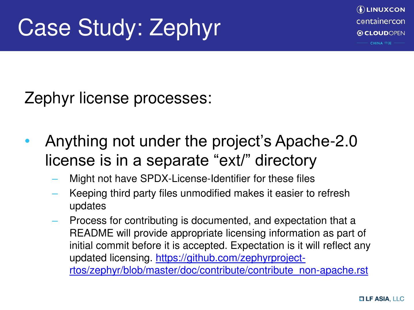 1 .License Information Management: Zephyr Case Study Kate Stewart & Steve Winslow Linux Foundation