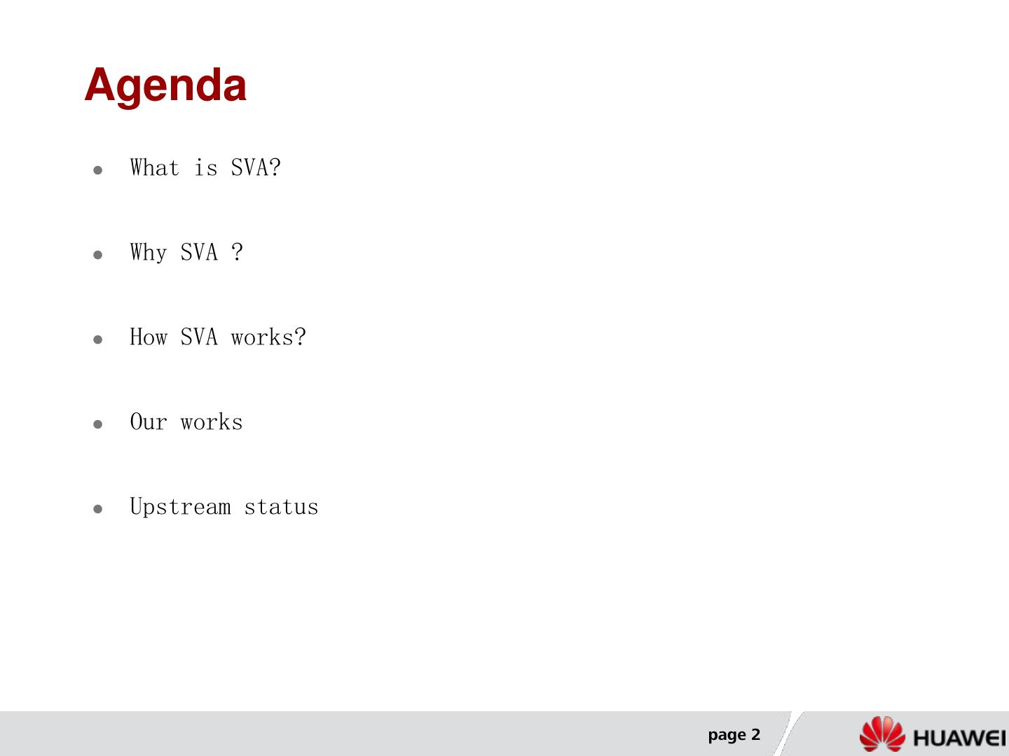 2 .Agenda What is SVA? Why SVA ? How SVA works? Our works Upstream status page 2