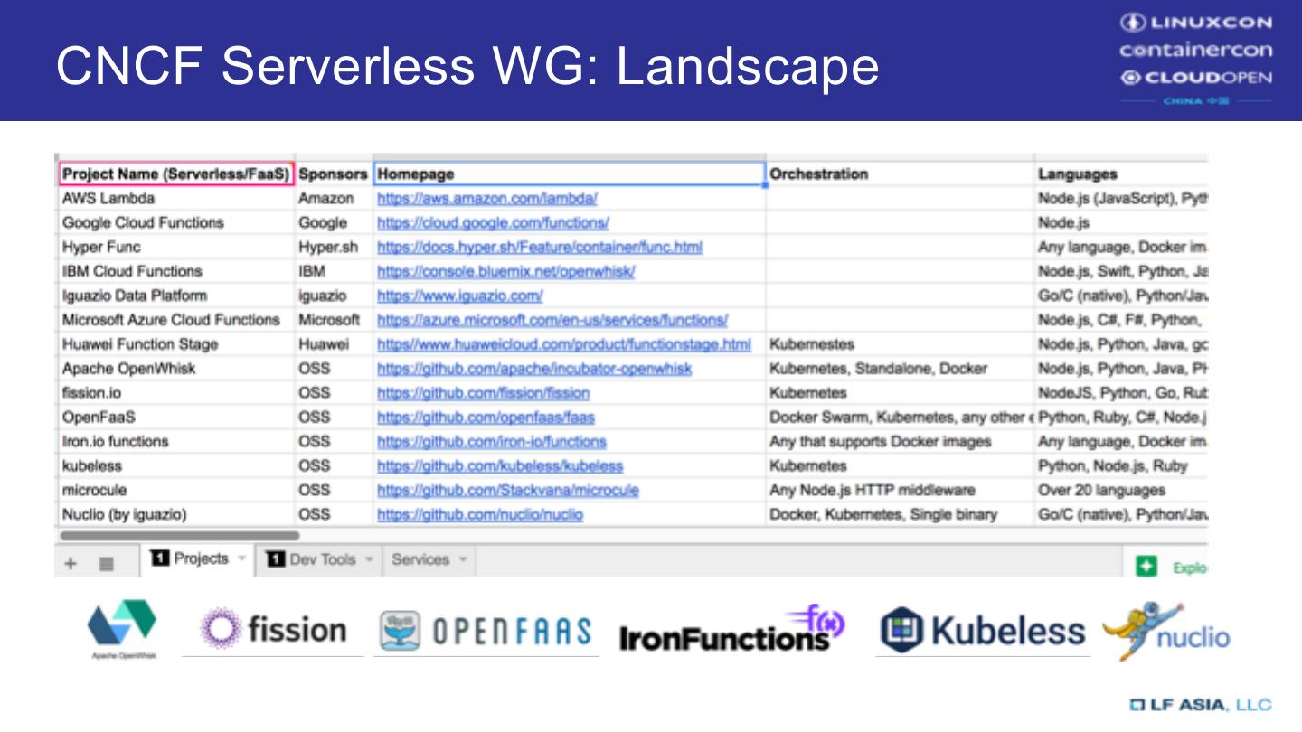 15 .CNCF Serverless WG: CloudEvents • Proposed and got agreement from CNCF TOC to work on Events • Creating a common format for events – Useful across entire Cloud Native deployments, beyond just Serverless • Considering a few proposals as a starting point: – OpenEvents – (Serverless, Inc.) – Cloud-Native Event Mapping (CNEM) – (iguazio) – Cloud Auditing Data Federation (CADF) – (DMTF, IBM) • CloudEvents was born – https://cloudevents.io