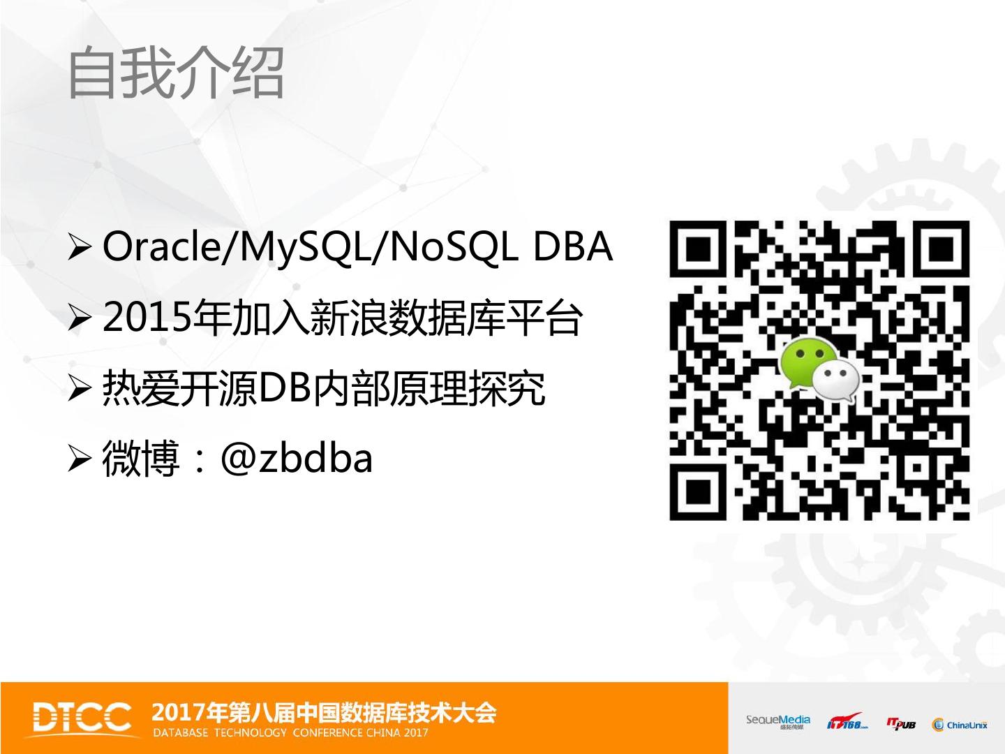 2 .自我介绍 Oracle/MySQL/NoSQL DBA 2015年加入新浪数据库平台 热爱开源DB内部原理探究 微博:@zbdba