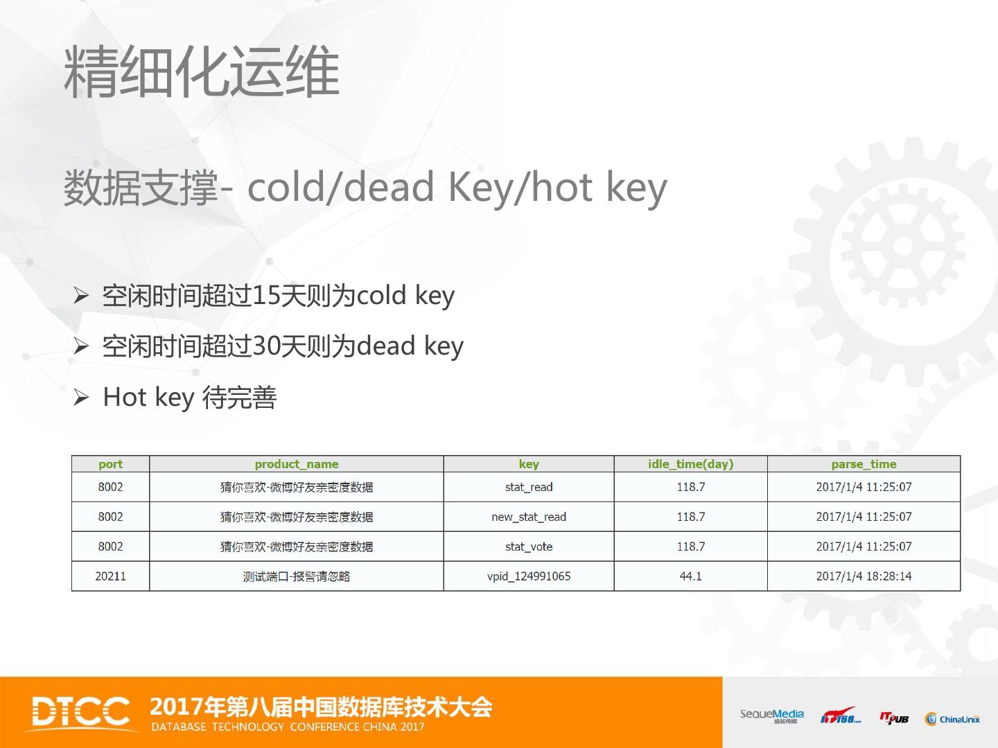 27 .精细化运维 数据支撑- cold/dead Key/hot key 空闲时间超过15天则为cold key 空闲时间超过30天则为dead key Hot key 待完善