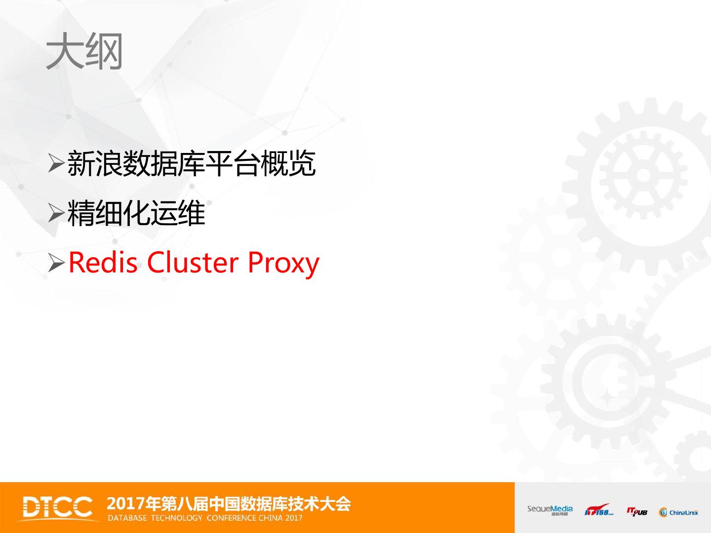 3 .大纲 新浪数据库平台概览 精细化运维 Redis Cluster Proxy
