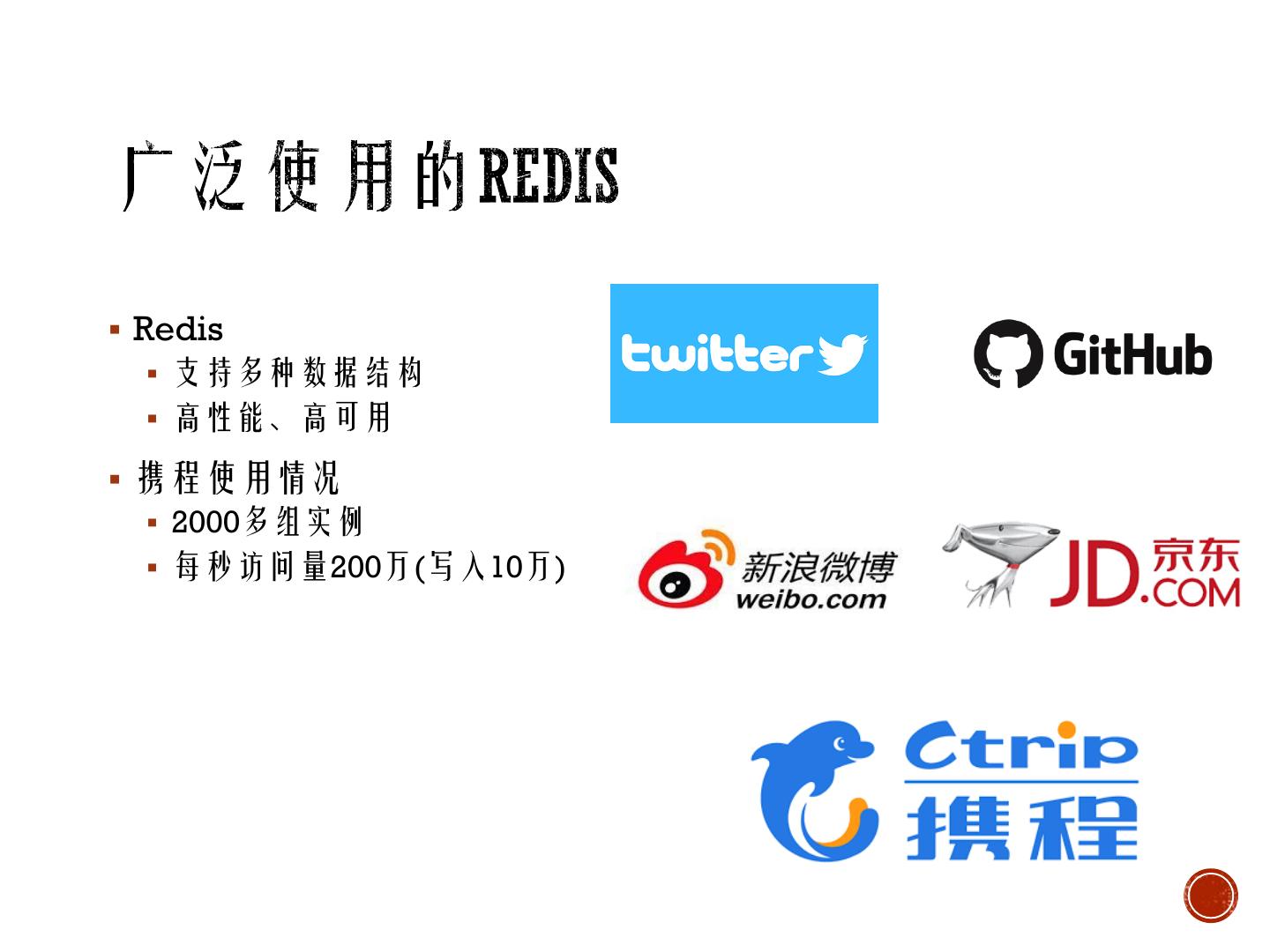 4 . Redis 支持多种数据结构 高性能、高可用 携程使用情况 2000多组实例 每秒访问量200万(写入10万)