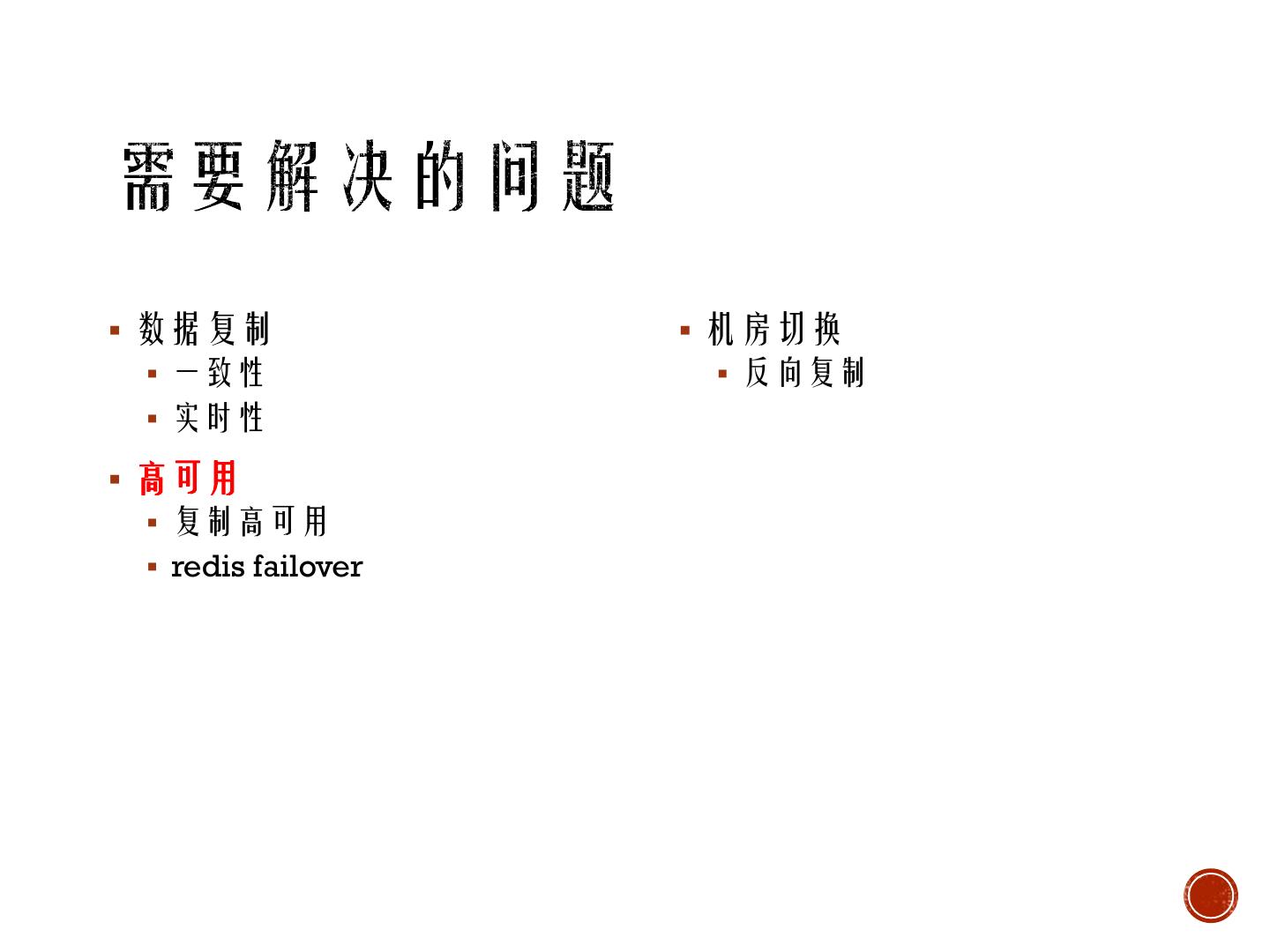 24 . 数据复制 机房切换 一致性 反向复制 实时性 高可用 复制高可用 redis failover