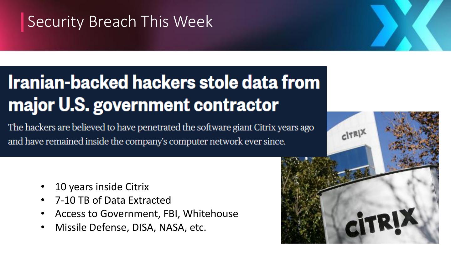 22 .Security Breach This Week • 10 years inside Citrix • 7-10 TB of Data Extracted • Access to Government, FBI, Whitehouse • Missile Defense, DISA, NASA, etc.