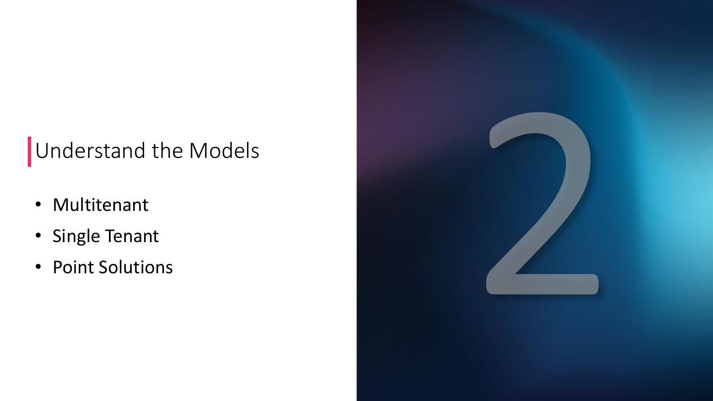 11 .Understand the Models • Multitenant • Single Tenant • Point Solutions