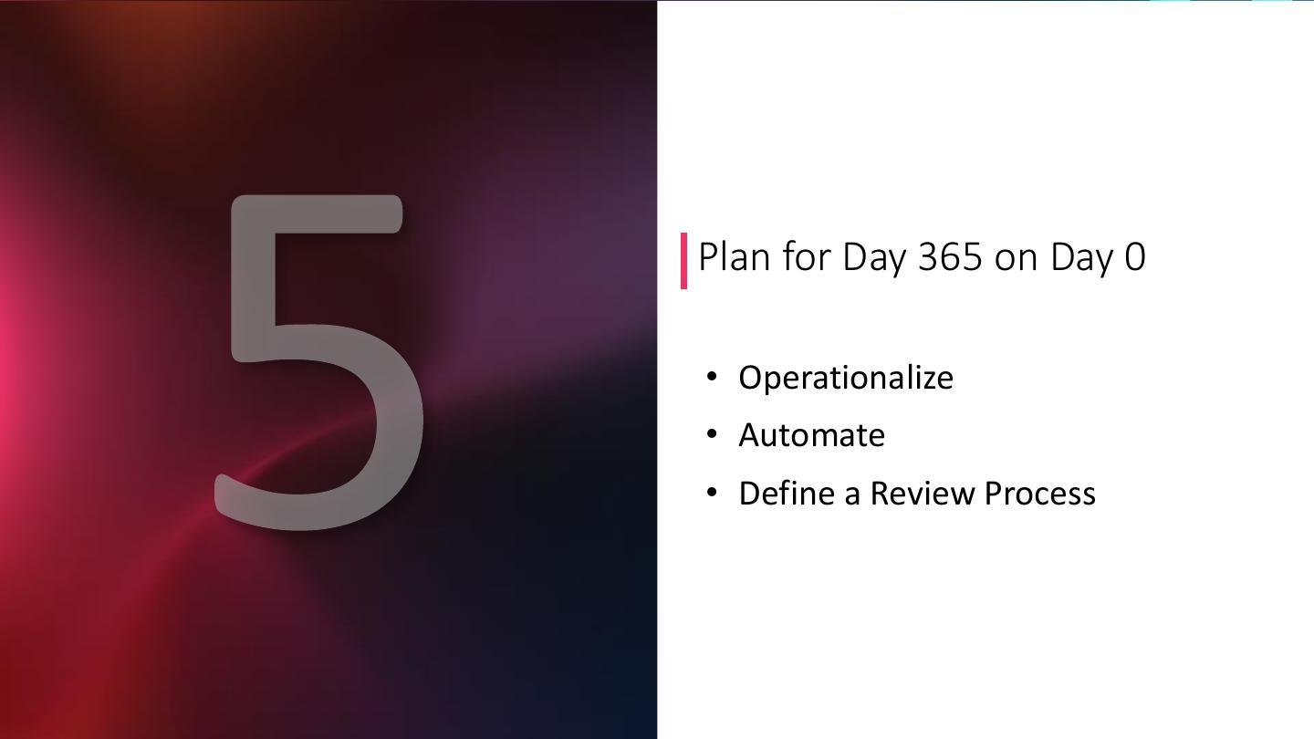 14 .Plan for Day 365 on Day 0 • Operationalize • Automate • Define a Review Process