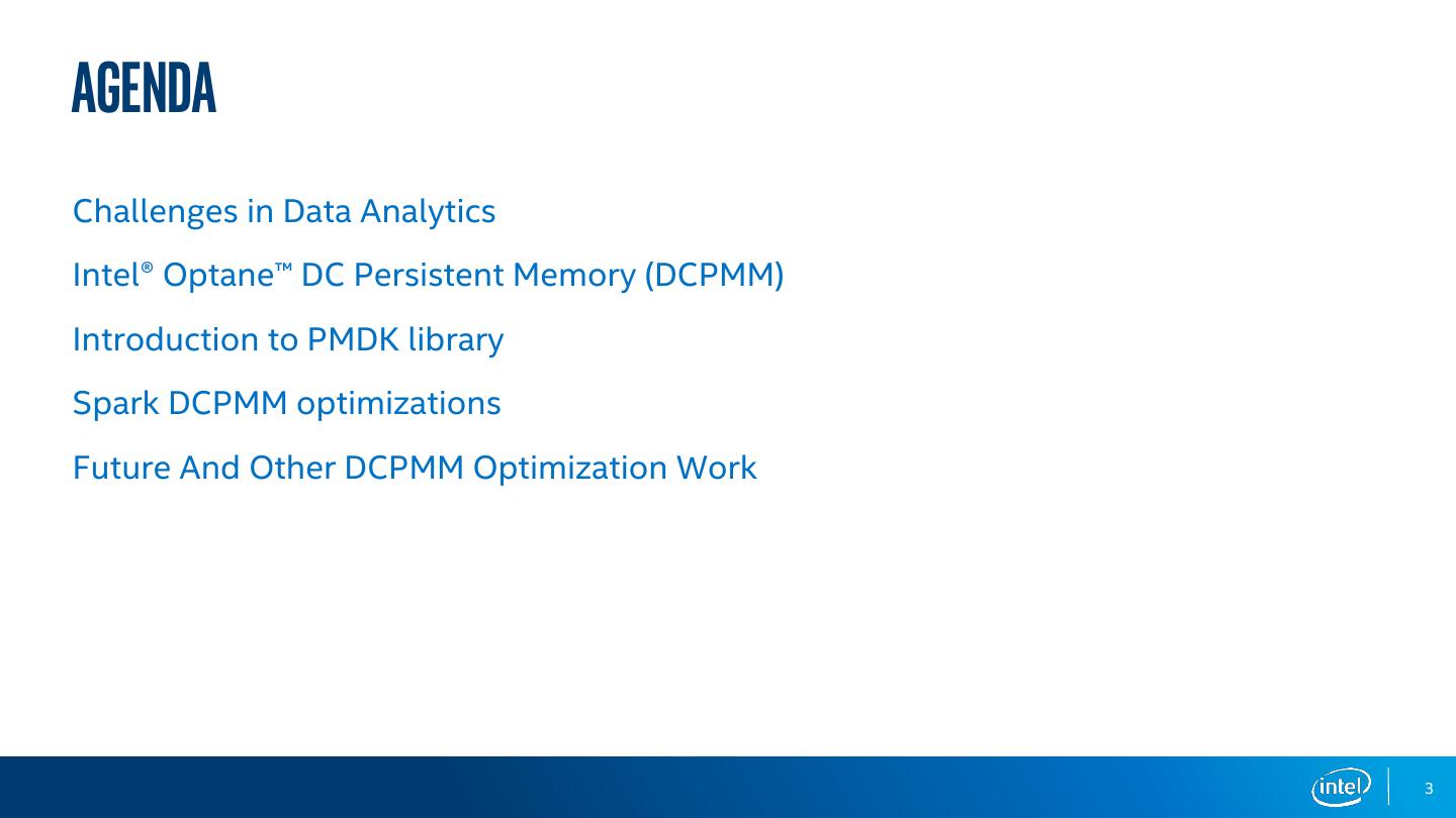3 .Agenda Challenges in Data Analytics Intel® Optane™ DC Persistent Memory (DCPMM) Introduction to PMDK library Spark DCPMM optimizations Future And Other DCPMM Optimization Work 3