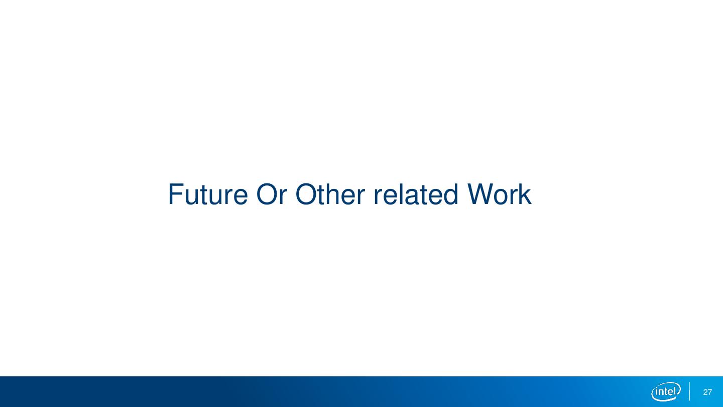 26 .Implement Details For DCPMM Enabling HDFS RDD Cached RDD Input RDD Address1 Address2 Kmeans Training …… …… …… Addressn Record(Vector) Read records from Read from cached HDFS and cache RDD and parse A partition of records partition into off- the address into heap(DCPMM or iterator of vectors RDD DRAM) Record(OFF-HEAP Address) Intel Confidential - CNDA 26