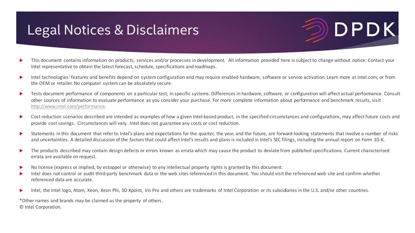 2 . Legal Notices & Disclaimers This document contains information on products, services and/or processes in development. All information provided here is subject to change without notice. Contact your Intel representative to obtain the latest forecast, schedule, specifications and roadmaps. Intel technologies’ features and benefits depend on system configuration and may require enabled hardware, software or service activation. Learn more at intel.com, or from the OEM or retailer. No computer system can be absolutely secure. Tests document performance of components on a particular test, in specific systems. Differences in hardware, software, or configuration will affect actual performance. Consult other sources of information to evaluate performance as you consider your purchase. For more complete information about performance and benchmark results, visit http://www.intel.com/performance. Cost reduction scenarios described are intended as examples of how a given Intel-based product, in the specified circumstances and configurations, may affect future costs and provide cost savings. Circumstances will vary. Intel does not guarantee any costs or cost reduction. Statements in this document that refer to Intel’s plans and expectations for the quarter, the year, and the future, are forward-looking statements that involve a number of risks and uncertainties. A detailed discussion of the factors that could affect Intel’s results and plans is included in Intel’s SEC filings, including the annual report on Form 10-K. The products described may contain design defects or errors known as errata which may cause the product to deviate from published specifications. Current characterized errata are available on request. No license (express or implied, by estoppel or otherwise) to any intellectual property rights is granted by this document. Intel does not control or audit third-party benchmark data or the web sites referenced in this document. You should visit the referenced web site and confirm whether referenced data are accurate. Intel, the Intel logo, Atom, Xeon, Xeon Phi, 3D Xpoint, Iris Pro and others are trademarks of Intel Corporation or its subsidiaries in the U.S. and/or other countries. *Other names and brands may be claimed as the property of others. © Intel Corporation.