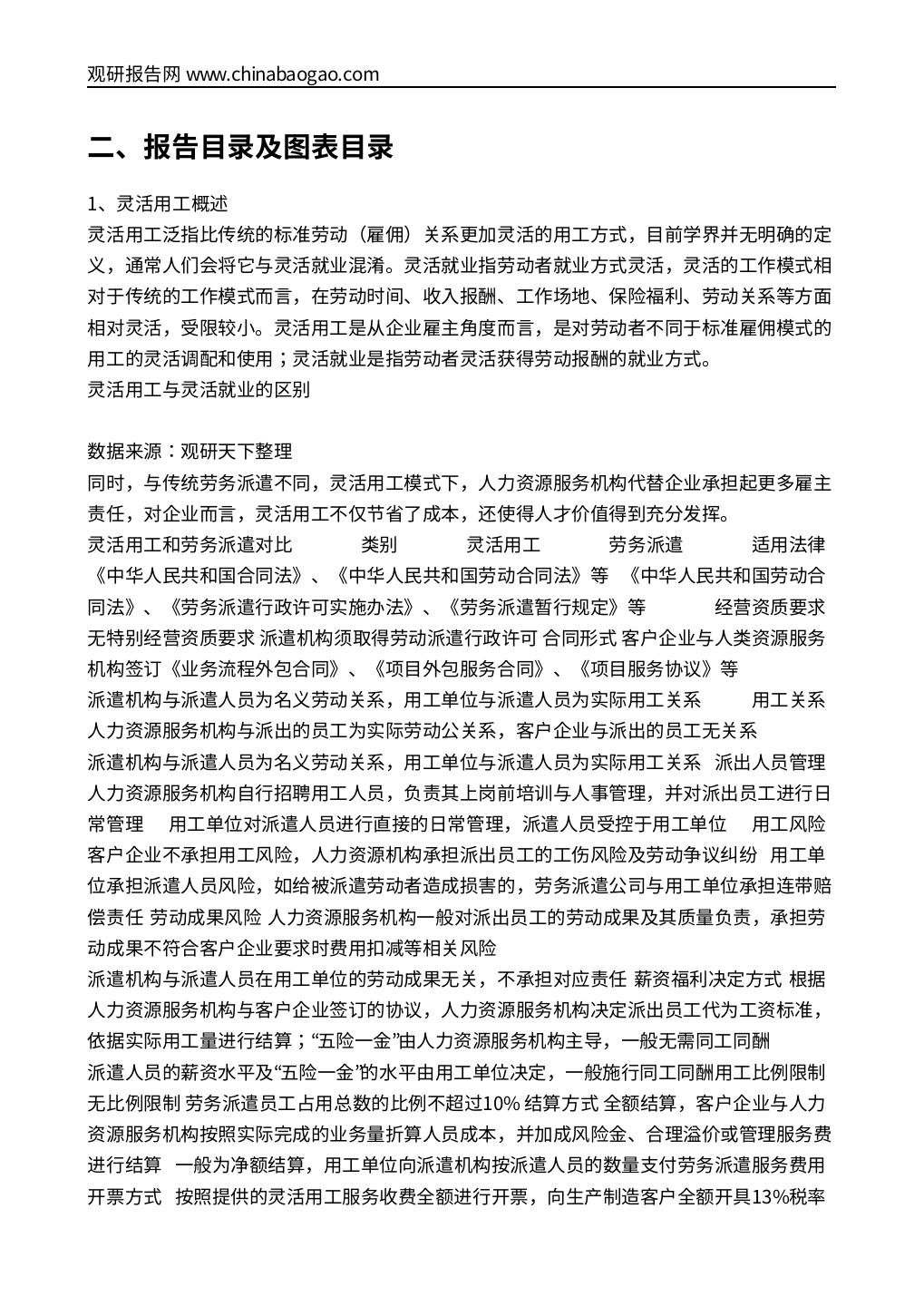1 .2022年中国灵活用工行业分析报告- 行业发展监测与投资潜力分析 报告大纲 观研报告网 www.chinabaogao.com