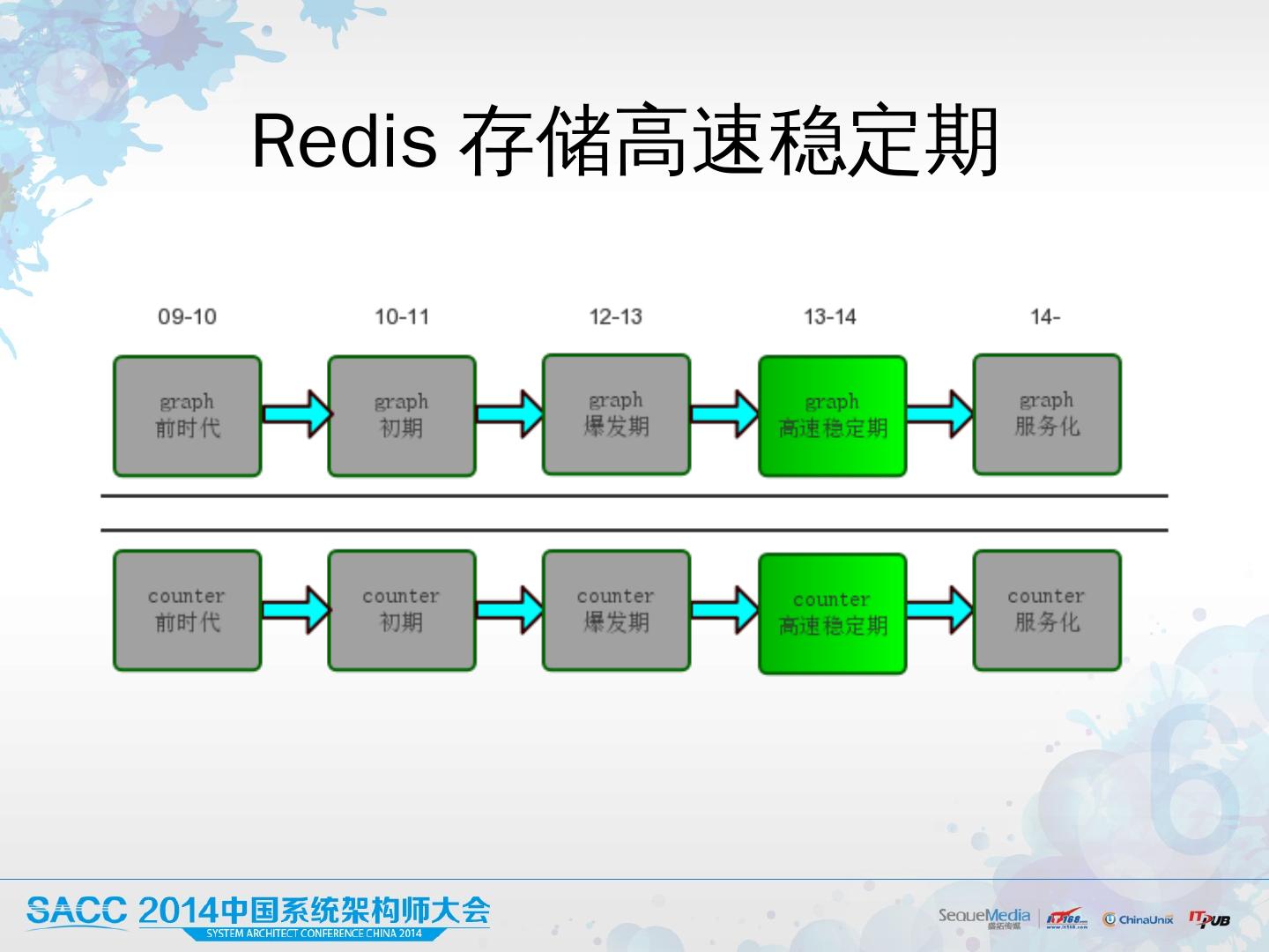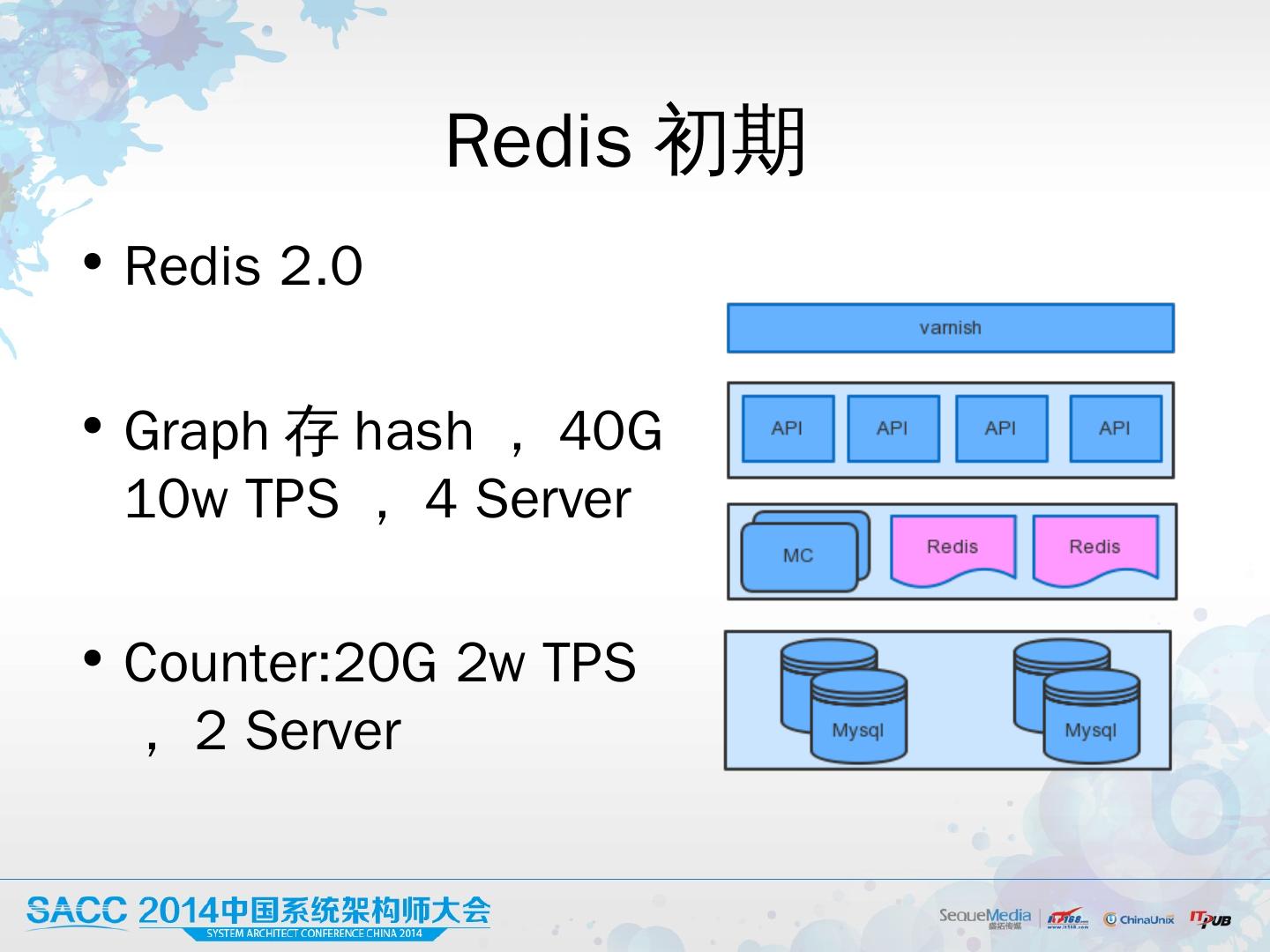 11 .Redis 初期 Redis 2.0 Graph 存 hash,40G 10w TPS , 4 Server Counter: 2 0G 2w TPS,2 Server