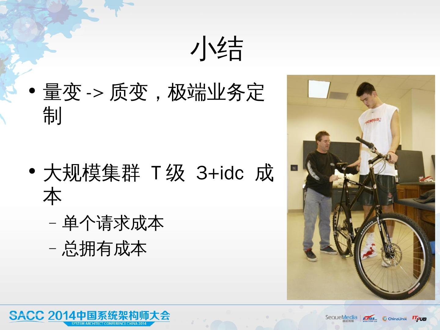 26 .小结 量变->质变,极端业务定 制 大规模集群 T 级 3 +idc 成本 单个请求成 本 总拥有成本