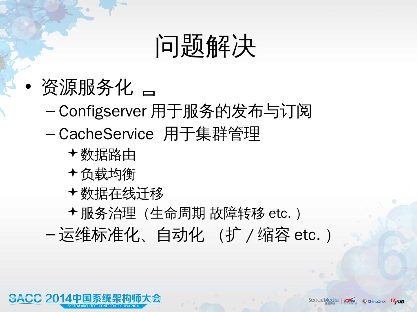 12 .问题出现 2011 年,初期使用经验不足 数据分片过 少 ,扩容困难 部分数据类型使用不当, 内 存超 预 期 多业务混 放 ,拆分不便 可用性不够 小业务初期没 有slave, server 故障 服务异 常 大业务挂 载 3-4 个 slave ,高峰期 write 超时,请求失败 重启耗时, 10-20 分钟服务异常