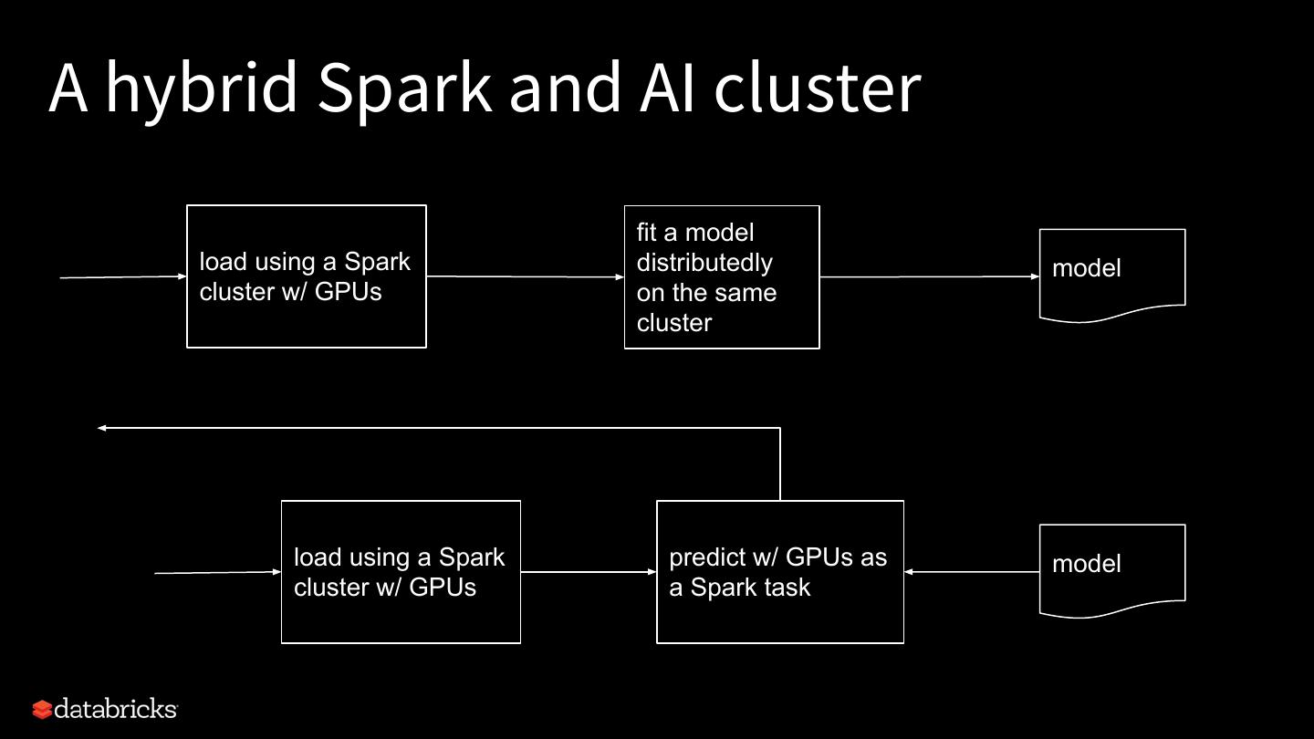 17 .A hybrid Spark and AI cluster fit a model load using a Spark distributedly model cluster w/ GPUs on the same cluster load using a Spark predict w/ GPUs as model cluster w/ GPUs a Spark task