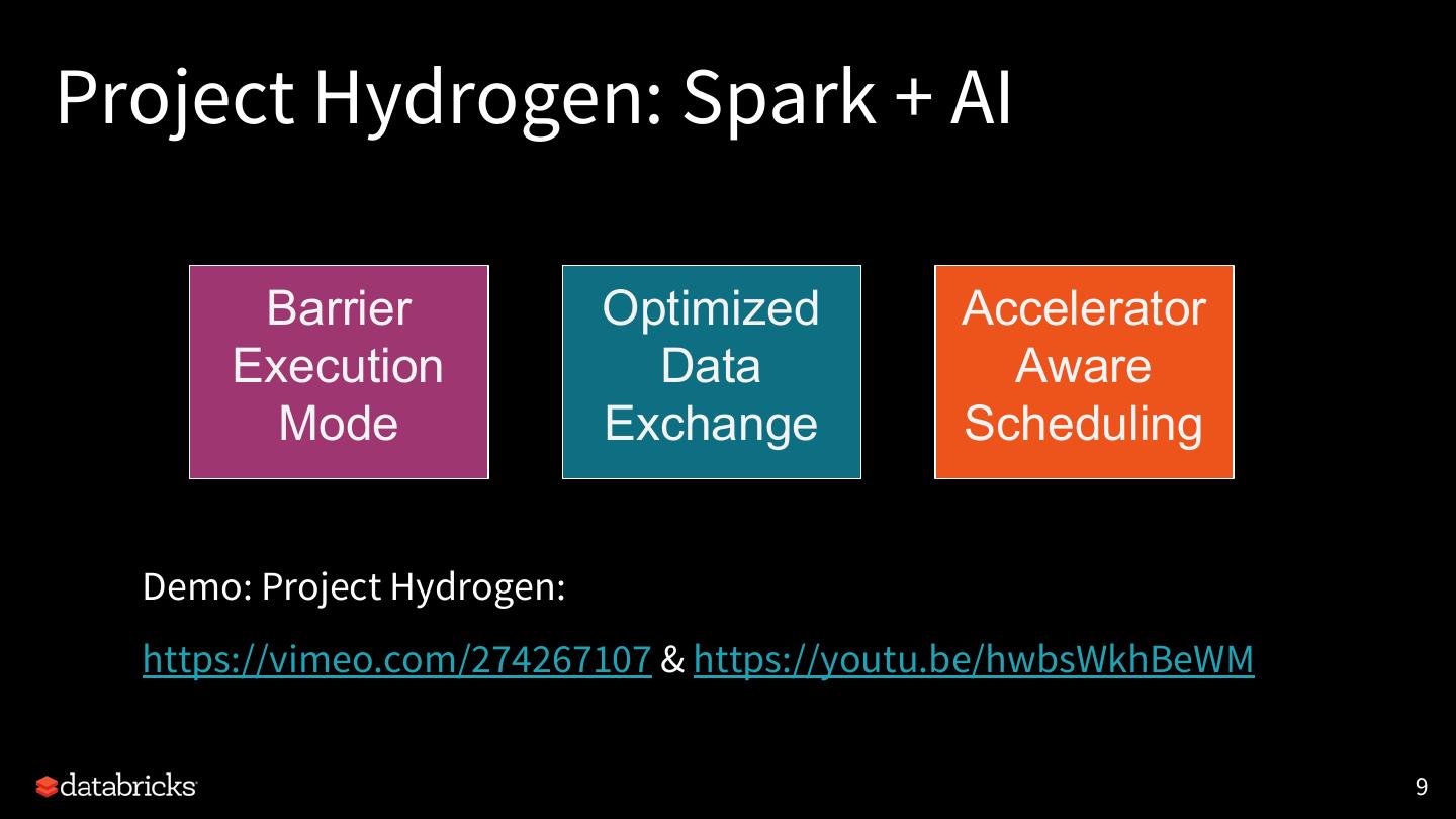 11 .Project Hydrogen: Spark + AI Barrier Optimized Accelerator Execution Data Aware Mode Exchange Scheduling Demo: Project Hydrogen: https://vimeo.com/274267107 & https://youtu.be/hwbsWkhBeWM 9