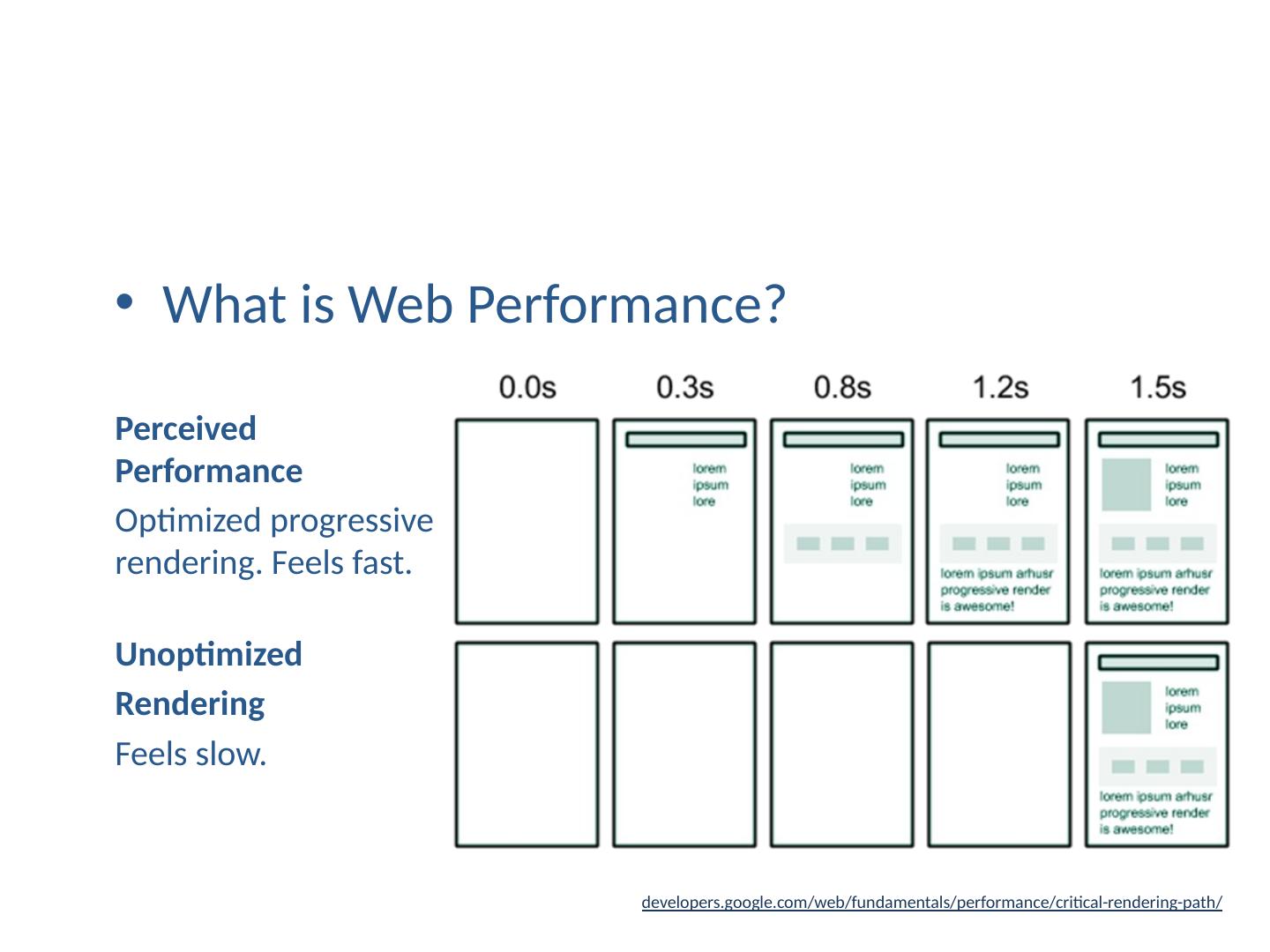 3 .What is Web Performance ? Perceived Performance Optimized progressive rendering. Feels fast. Unoptimized Rendering Feels slow. developers.google.com /web/fundamentals/performance/critical-rendering-path /