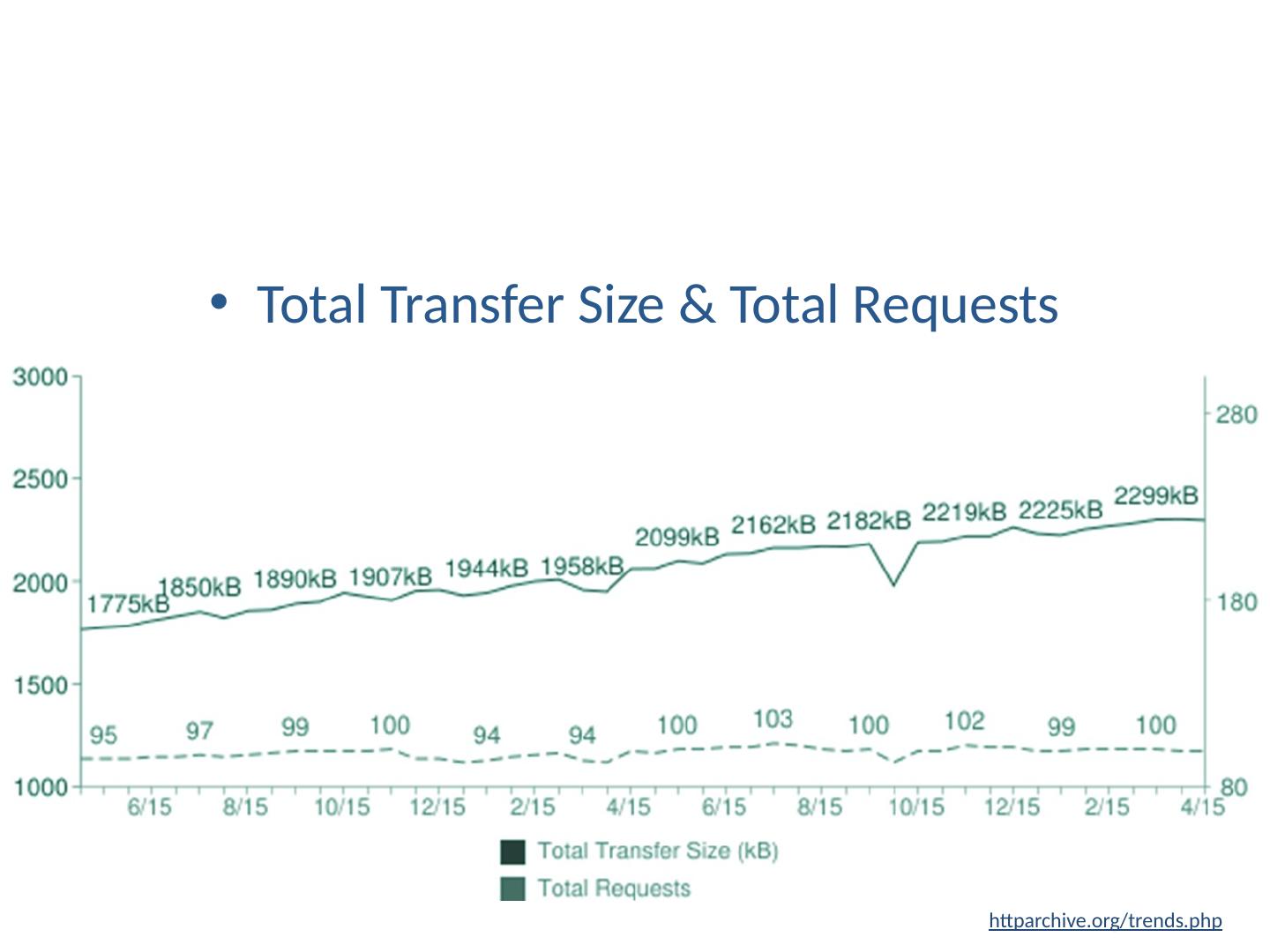 8 .httparchive.org / trends.php Total Transfer Size & Total Requests