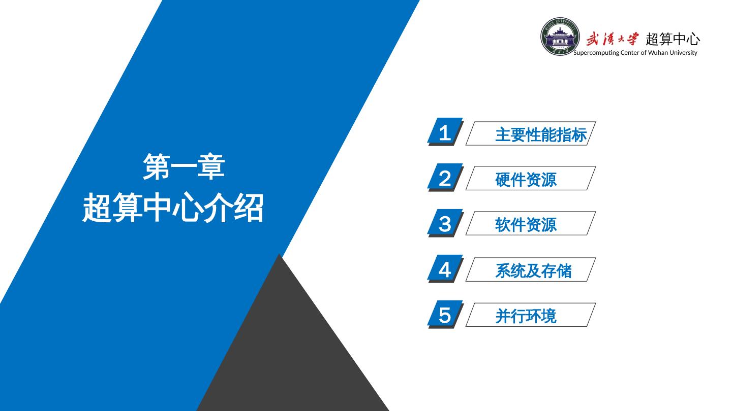 3 .第一章 超算中心介绍 1 2 3 4 5 主要性能指标 硬件资源 软件资源 系统及存储 并行环境