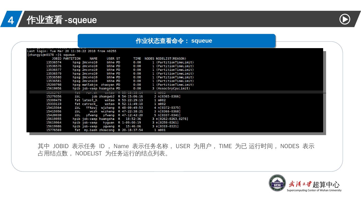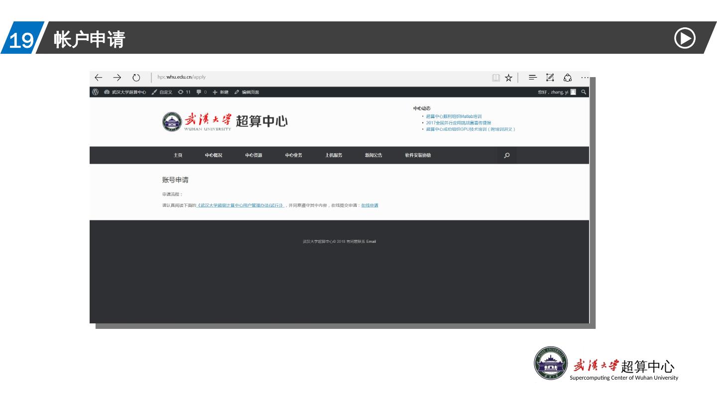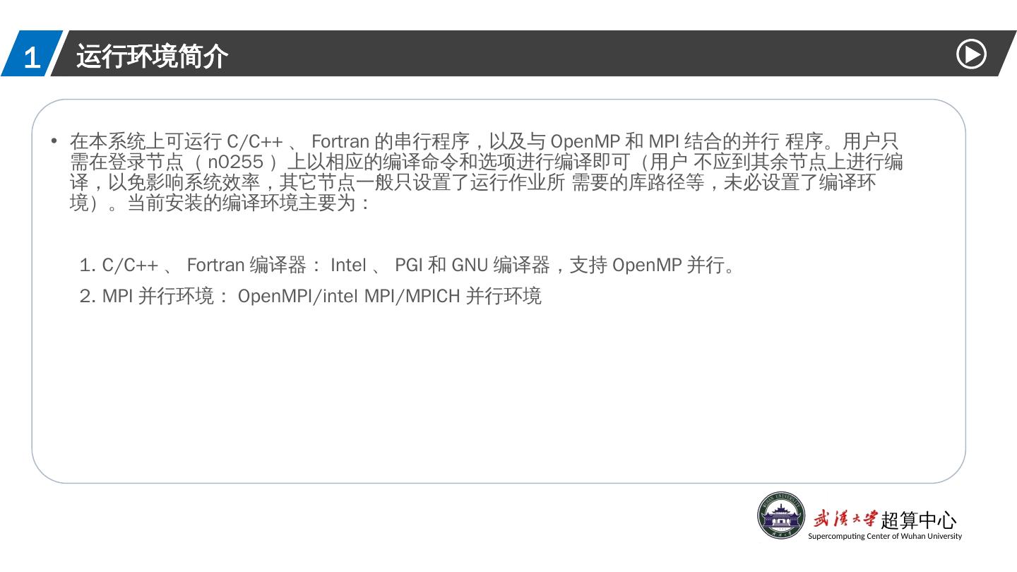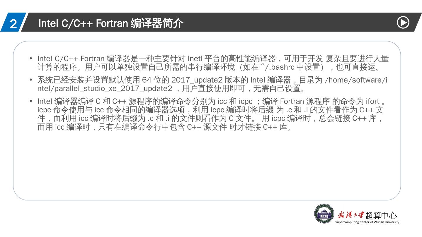1 .2018 用 户培训 2018 INSTRUMENTS USER GUIDE 超 算 中 心 http://hpc.whu.edu.cn/ hpc@whu.edu.cn (027)-68776058 Supercomputing Center of Wuhan University