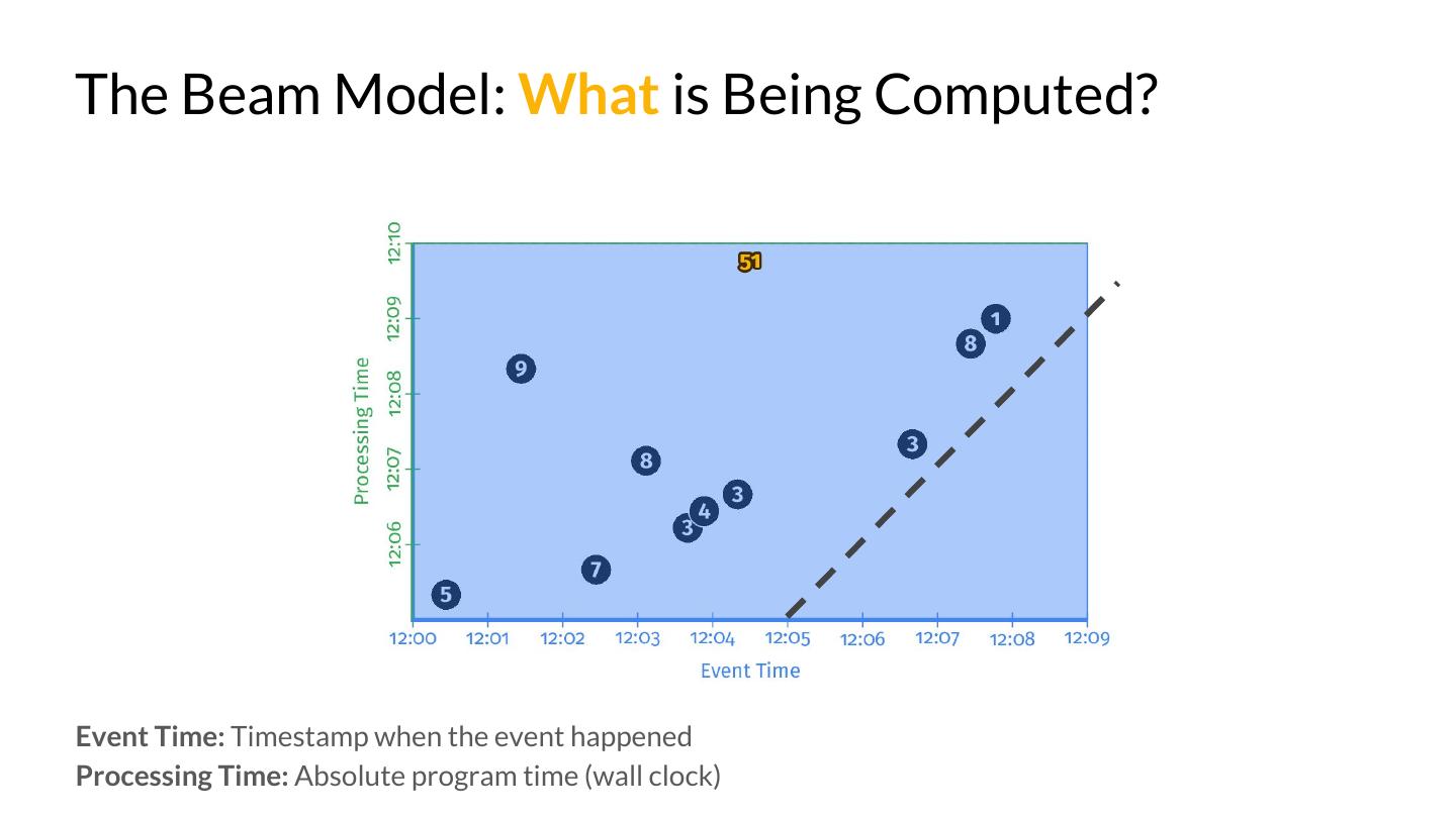 21 .The Beam Model: What is Being Computed? Event Time: Timestamp when the event happened Processing Time: Absolute program time (wall clock)