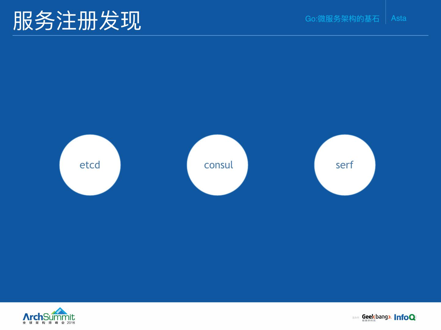 17 .服务注册发现 Go:微服务架构的基⽯石 Asta etcd consul serf