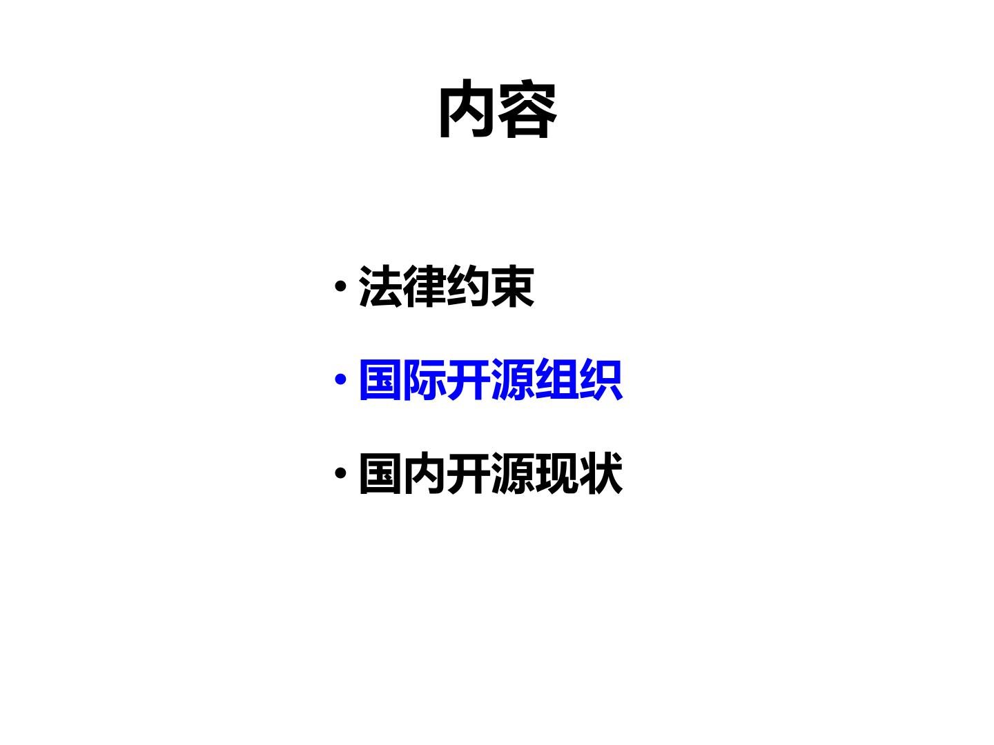 3 . 内容 • 法律约束 • 国际开源组织 • 国内开源现状