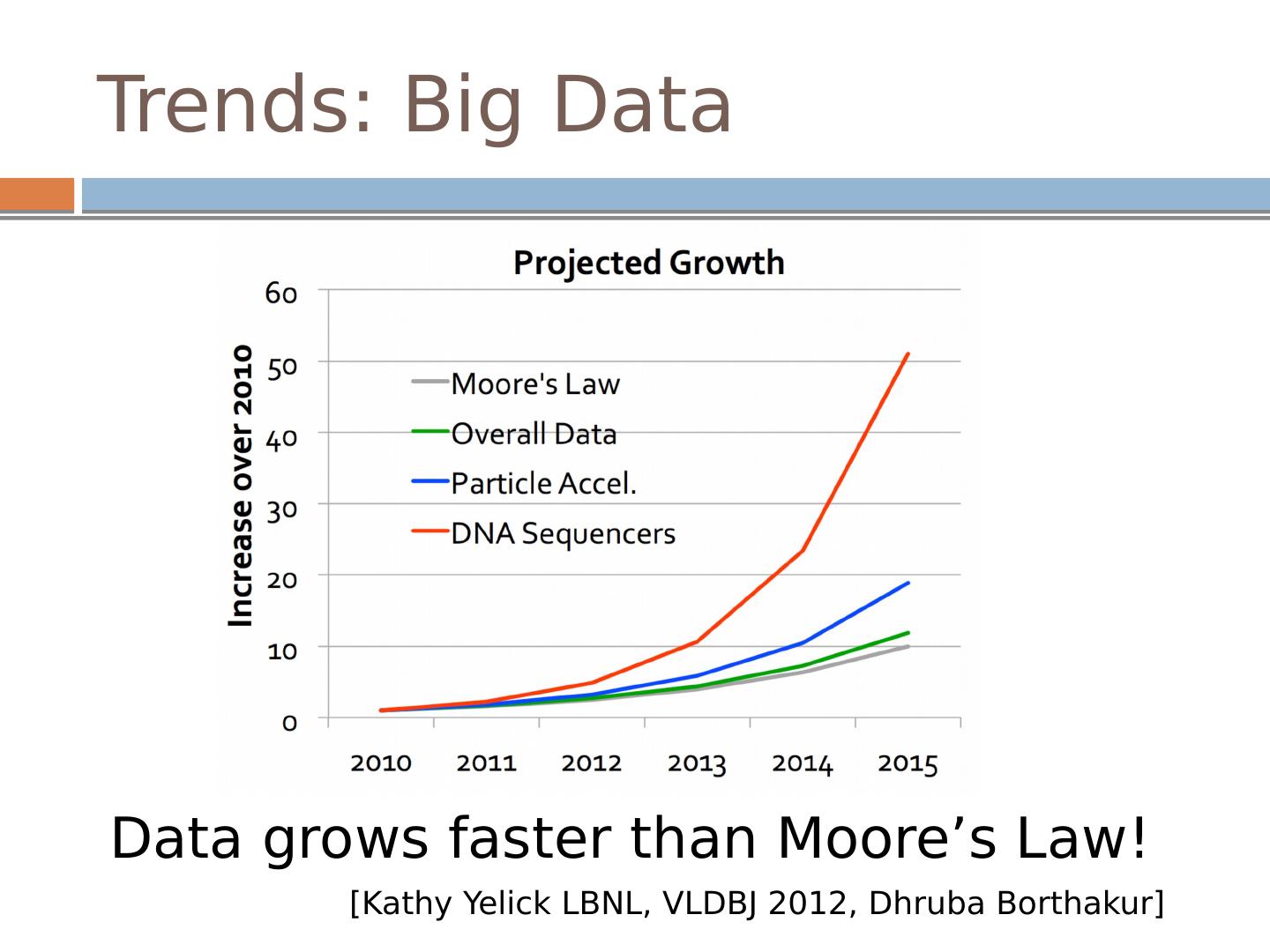 2 .Trends: Big Data Data grows faster than Moore’s Law! [Kathy Yelick LBNL, VLDBJ 2012, Dhruba Borthakur ]