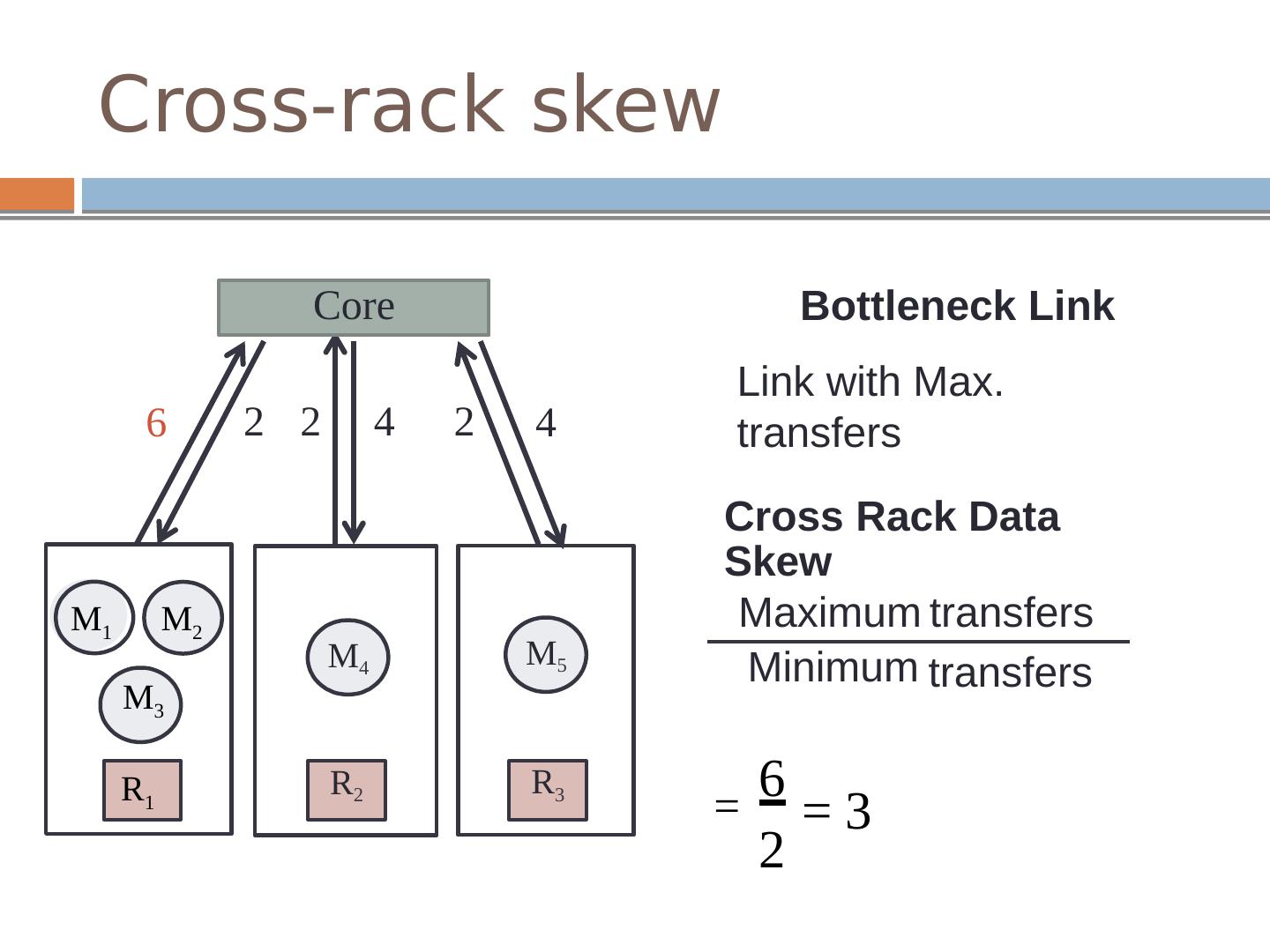 11 .Cross-rack skew Bottleneck Link Link with Max. transfers 6 4 Cross Rack Data Skew Maximum Minimum transfers transfers 6 2 = 3 = M 5 R 3 Core 2 2 4 2 M 4 R 2 M 1 M 2 M 3 R 1