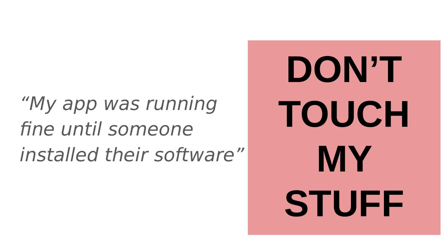 4 .“My app was running fine until someone installed their software” DON’T TOUCH MY STUFF