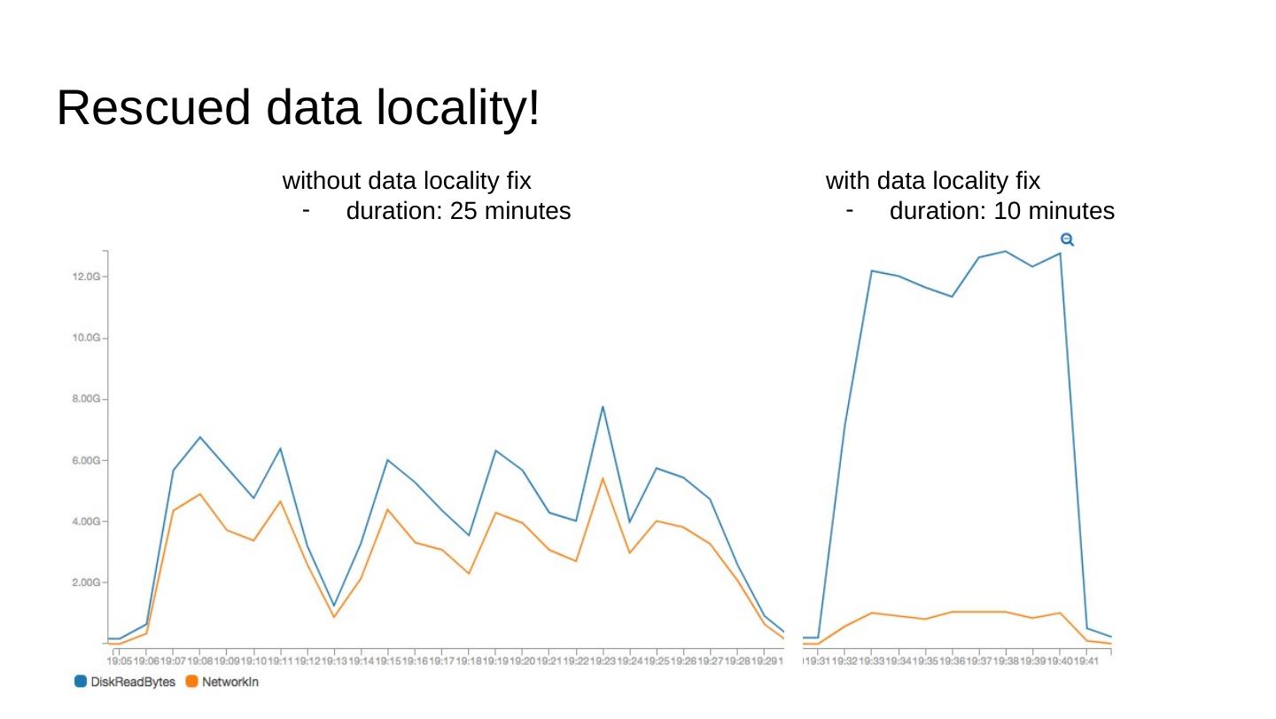 28 .Rescued data locality! with data locality fix duration: 10 minutes without data locality fix duration: 25 minutes