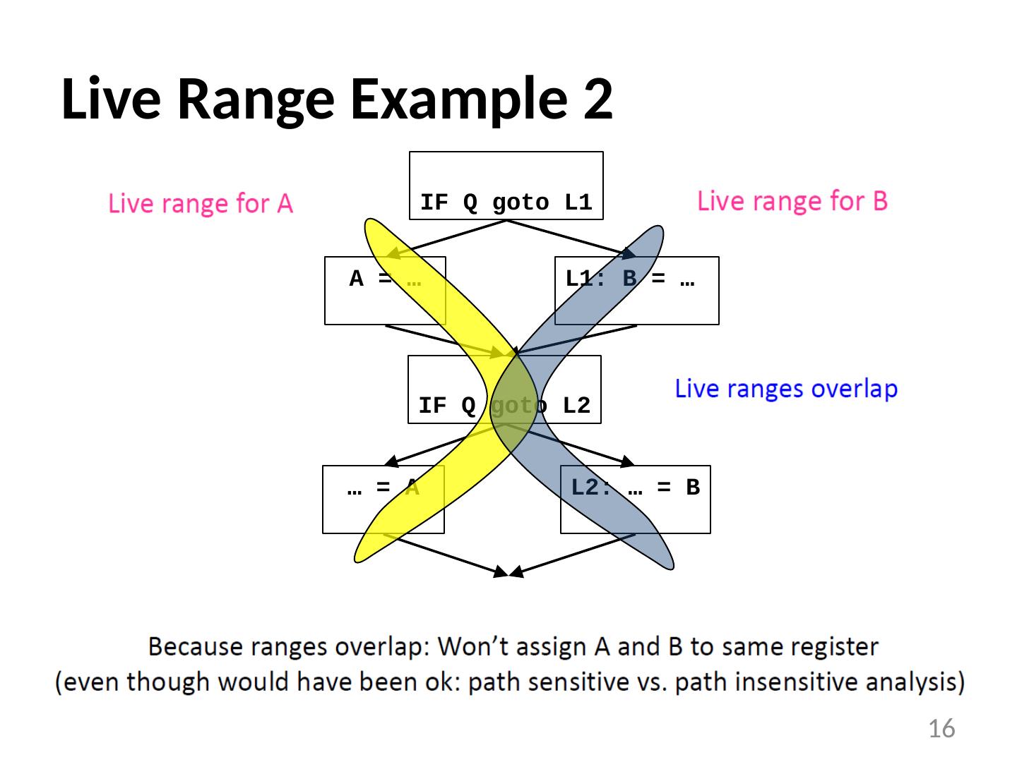 16 .Live Range Example 2 16 A = … L1: B = … IF Q goto L1 IF Q goto L2 L2: … = B … = A
